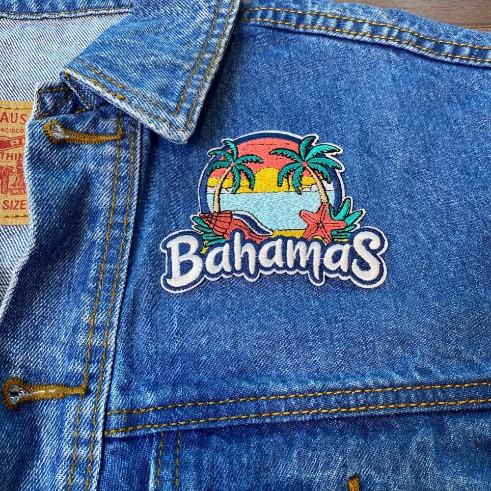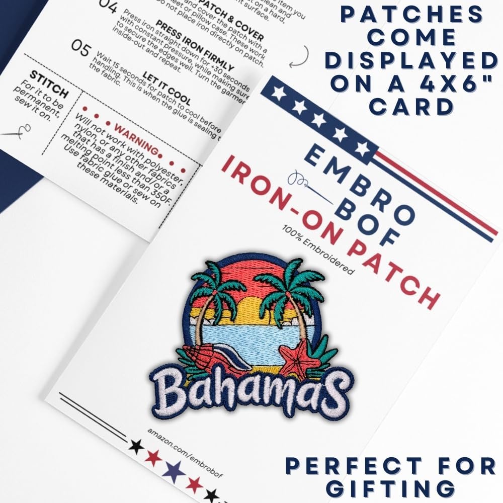 تصحيح شاطئ البهاما في الجهد - 3 بوصات ، حديد جزر البهاما البارد على سفر التصحيح - بقع سفر مطرزة لحقائب الظهر