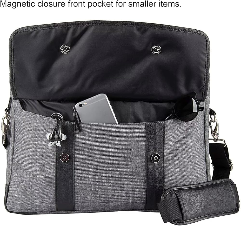 Generous front magnetic pocket for stationary, charger, cable, wallet, cell phone, and other items on the go