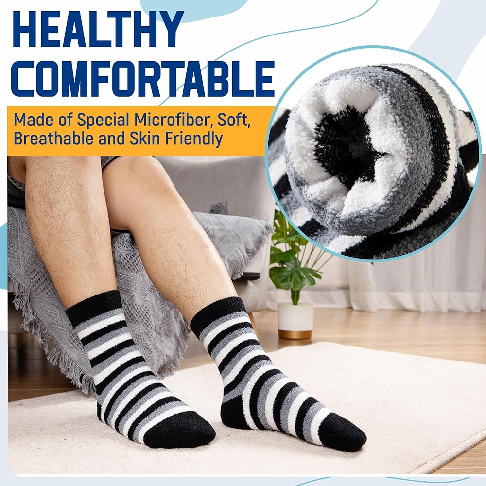 مادة ناعمة ورقيقة: مصنوعة من مادة الألياف الدقيقة القطيفة والناعمة، هذه الجوارب رقيقة بشكل لا يصدق وتشعر وكأنها تمشي على السحاب، مما يجعلها مثالية للاسترخاء في المنزل أو النوم فيه.