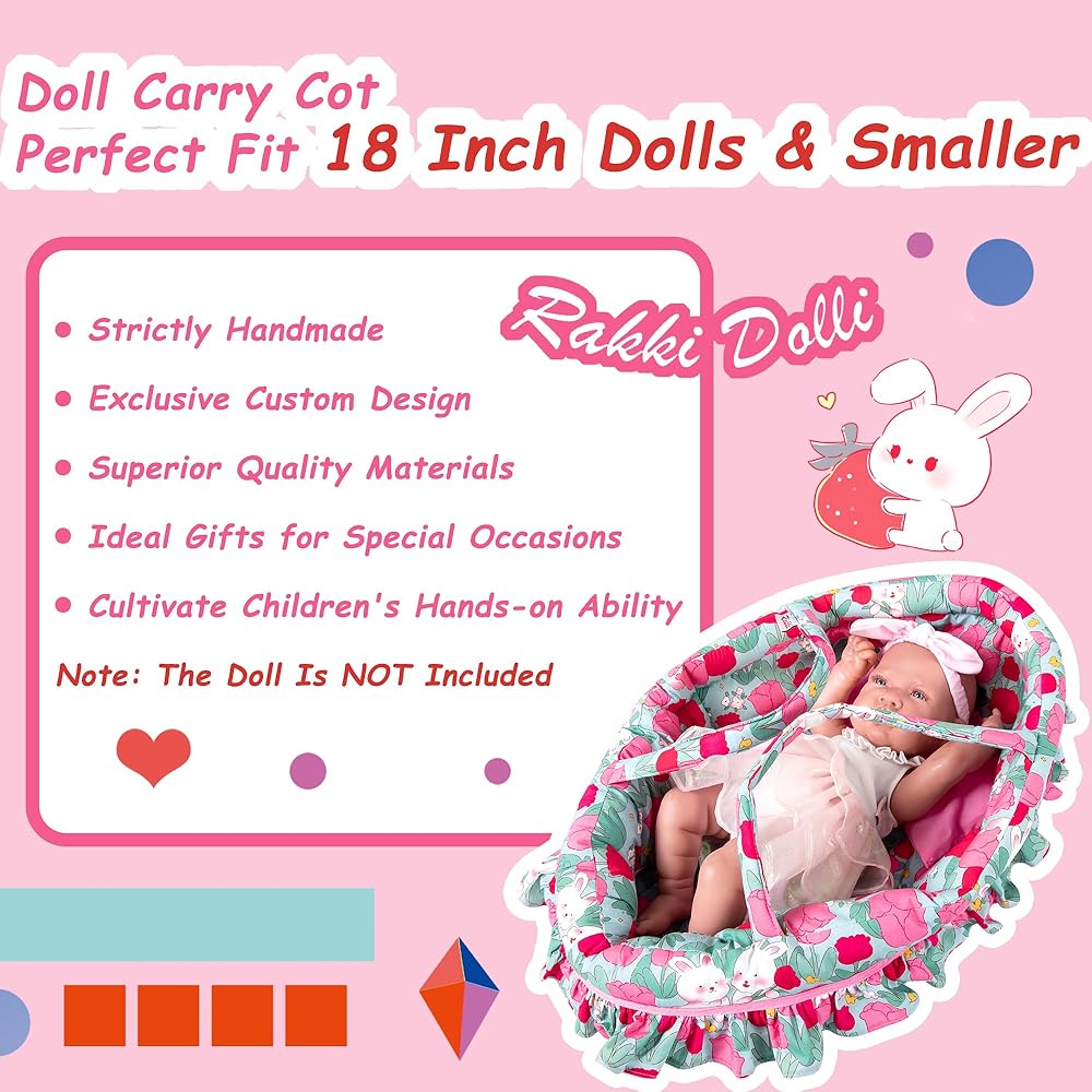 Our unique baby doll carry cot is designed for 16-inch baby dolls and smaller, and is made of high-quality cotton and polyester fabric with a 100% polyester fiber inter-layer. دمية غير مدرجة.