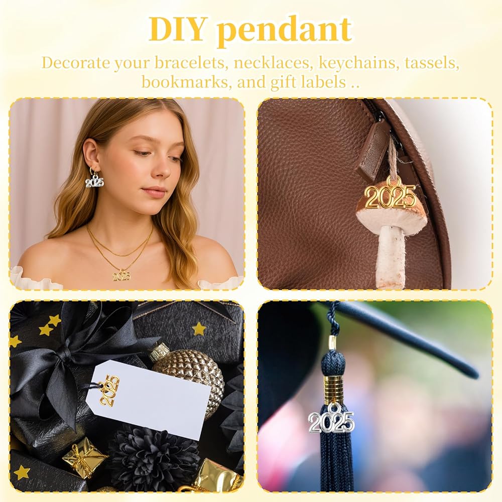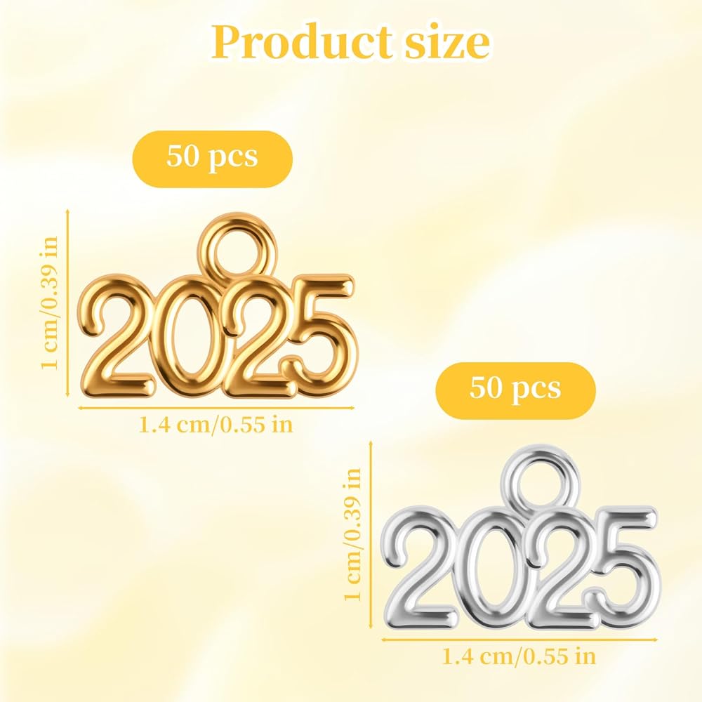 • Value package: You will receive 100 2025 pendants in two colors, including gold and silver, with 50 pieces of each color. 2025 is coming soon, and there is no DIY accessory more meaningful than 2025 pendants. 2025! We are about to graduate