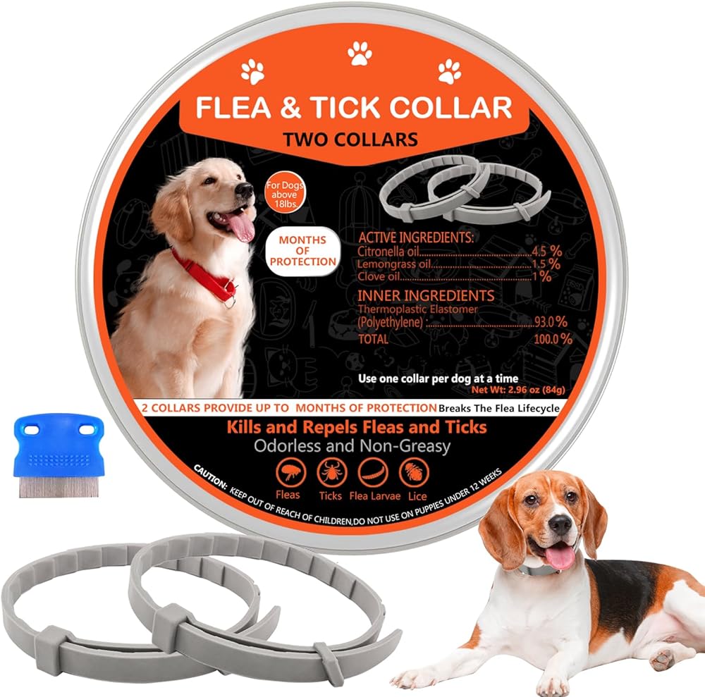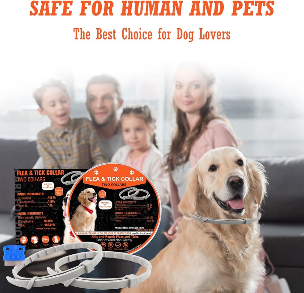 طوق البراغيث للكلاب، عبوتين من الياقات للكلاب، حماية لمدة 12 شهرًا، مقاوم للماء، مقاس واحد قابل للتعديل يناسب الجميع، برتقالي داكن