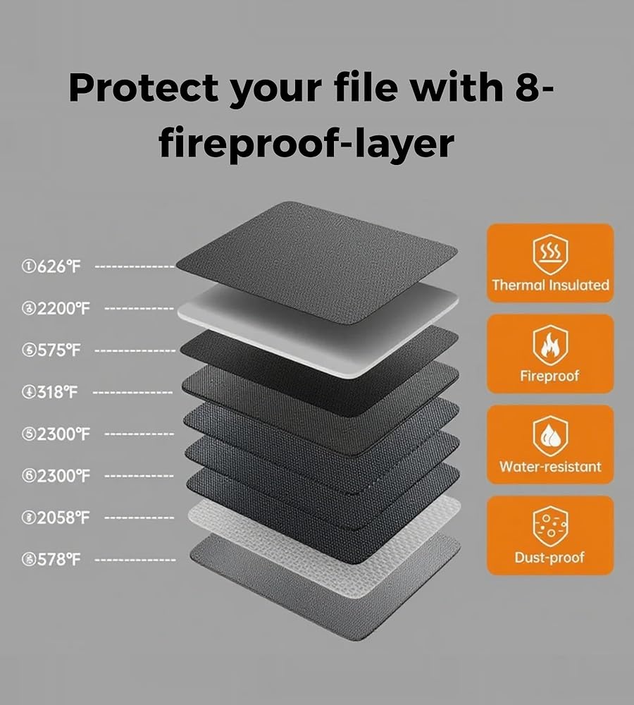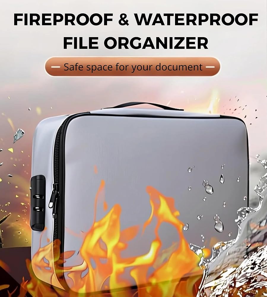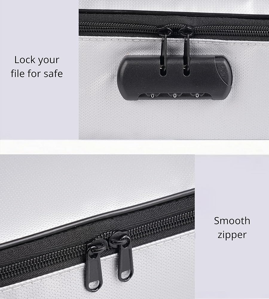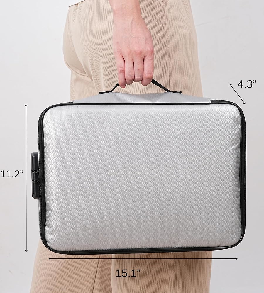 Protect your most important belongings with our upgraded Fireproof and Waterproof Document Bag. Designed for ultimate safety and convenience, this document organizer combines fire-resistant materials with water-repellent layers, offering dual protection against unexpected disasters such as house fires, flooding, or accidental spills. Capable of withstanding temperatures up to 5200°F, it ensures that your files, passports, certificates, and valuables stay intact and protected when it matters most. Equipped with a secure three-digit combination lock, this storage bag helps prevent unauthorized access, making it perfect for storing sensitive documents, cash, and personal items at home or in the office. The large capacity design features multiple compartments to keep everything from USB drives and pens to laptops and legal documents neatly organized and easy to access. Built with portability in mind, the bag includes a durable reinforced handle, allowing you to carry it effortlessly during travel, business trips, or even emergency evacuations. Its compact structure fits easily into safes, drawers, or cabinets while still offering ample room inside. This fireproof document bag is not just for emergencies. It's also an ideal solution for everyday organization, whether you're managing household records, storing important business paperwork, or preparing a go-bag for quick evacuation. The bag's versatile design makes it suitable for use in homes, offices, schools, or vehicles. Invest in peace of mind with a storage solution that offers high heat resistance, water protection, smart organization, and reliable security—all in one. Whether you're protecting family records, travel documents, or valuable tech, this fireproof document bag has you covered.