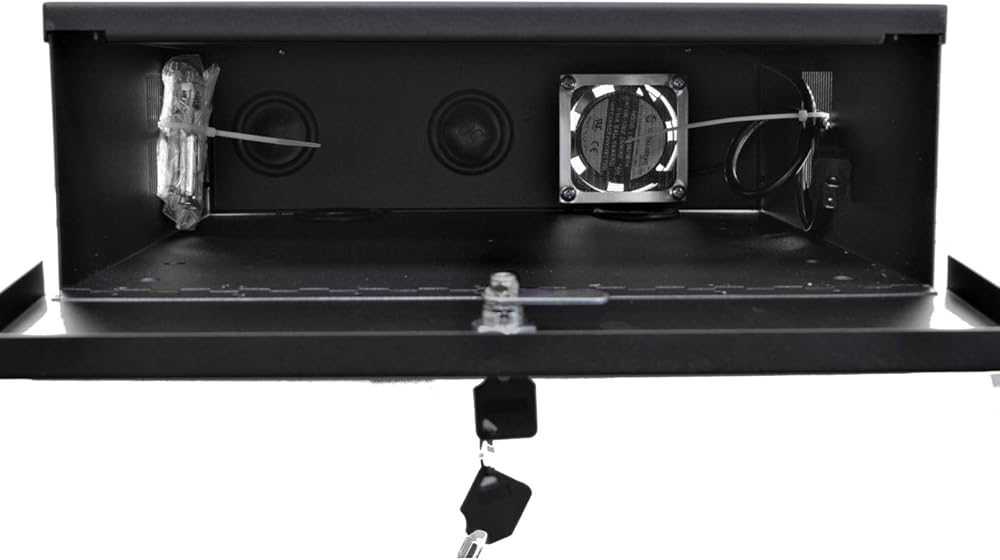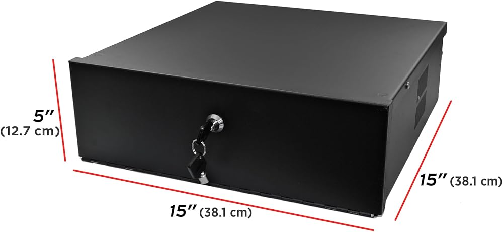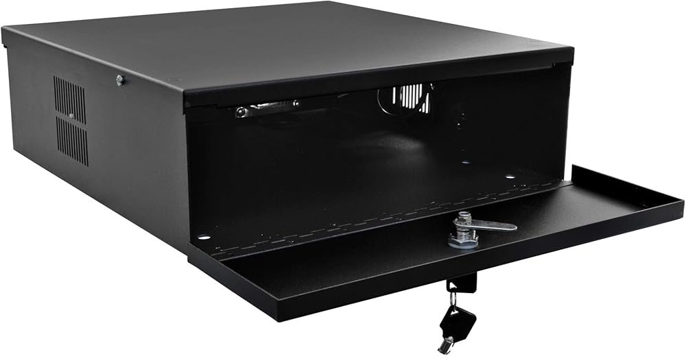 This is a heavy duty security lock box for DVRs, VCRs and similar electronic equipment. The durable 16 gauge steel construction along with the locking door keeps your equipment safe and prevents any tampering. The built-in fan keeps the temperature down and your equipment from overheating.