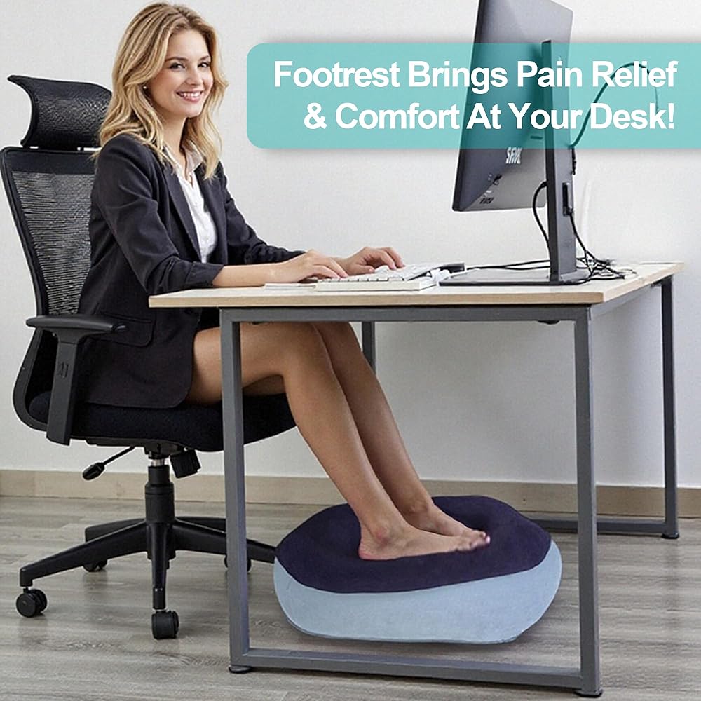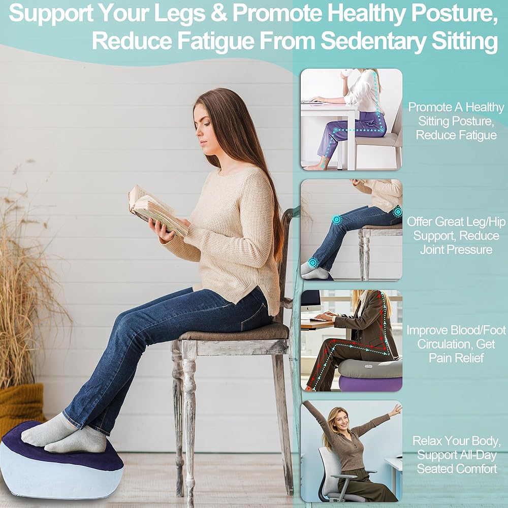 راحة القدم المريحة للمكتب في العمل لتقديم دعم القدم وتشجيع تداول الساق - مسند قدم محمول وقابل للنفخ لأقل من المكتب لتخفيف آلام الظهر والورك في المنزل ، المكتب ، السيارة ، السيارة
