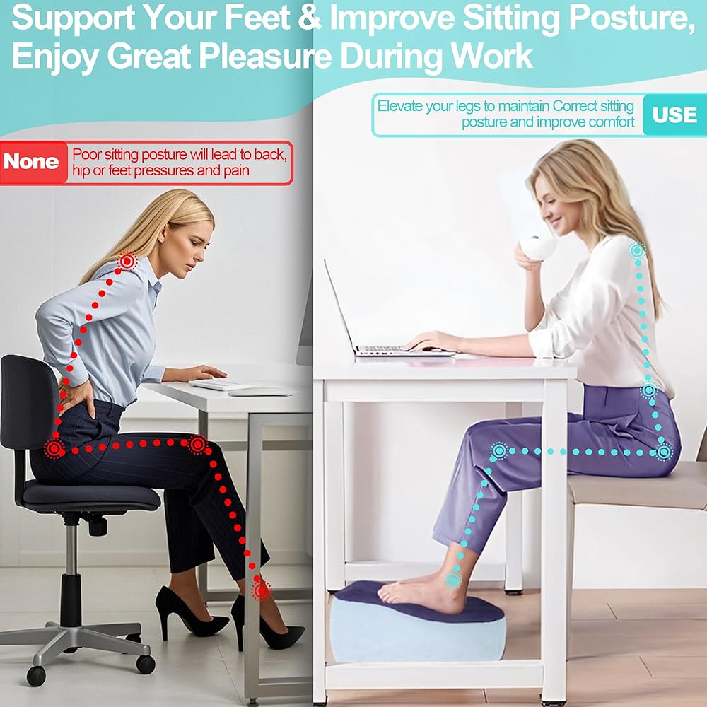 لتخفيف الألم طوال اليوم - توفر راحة قدمنا تحت مكتب الراحة طوال اليوم من خلال دعم قدميك وساقيك. تساعدك على تحسين الدورة الدموية إلى الساقين ، وتخفيف ضغوط الظهر أو الورك والألم وتقليل التعب من الأنشطة المستقرة.