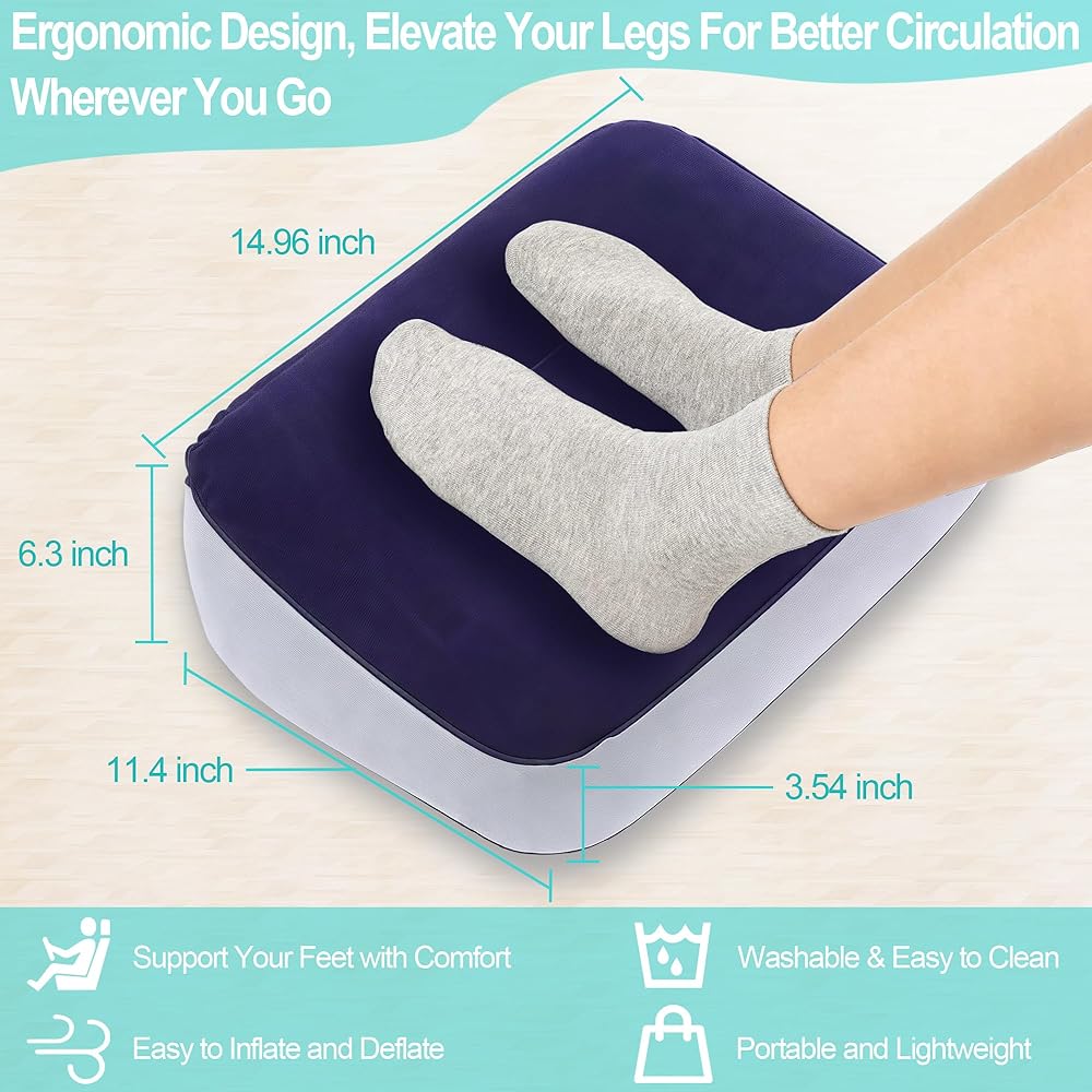 اعمل من أجلك في مناسبات متعددة - توفر هذه الراحة القابلة للنفخ راحة كبيرة لك للجلوس لفترات طويلة من الوقت عن طريق رفع قدميك وساقيك. يمكنك بسهولة تخفيف ضغوط العمود الفقري وتمديد جسمك بشكل أكثر مريحة في أي مكان سواء في المنزل والمكتب والطائرة والسيارة وما إلى ذلك ..