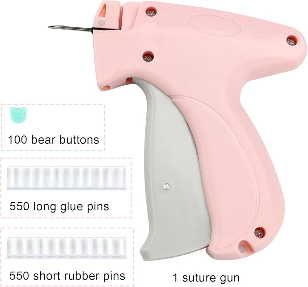 Mini Stitch Gun,Clothing Stitch Gun,with 100 Bear Buttons,550 Long Glue Needles and 550 Short Rubber Pins for Quick Sewing of Clothing and Quilts