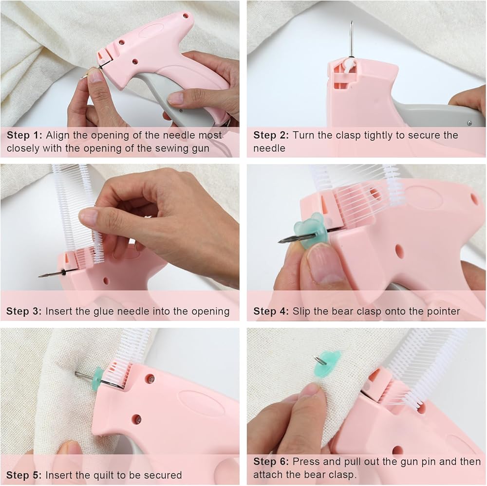 • 【Simple and convenient】When using,tighten the side fixator of the stitch gun for clothes,then insert the glue needle into the gun,and finally align the needle into the clothes and press the switch of the sewing gun, which is very simple and convenient.