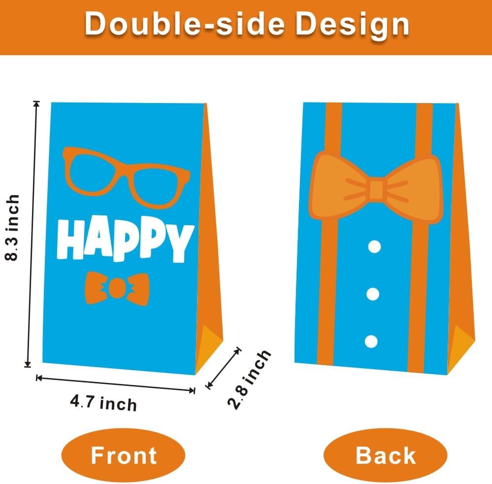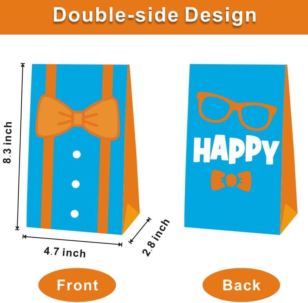 • Goodie Bags are designed with Orange Blue patterns which are in line with the the theme of birthday parties, creating a strong atmosphere, fit well with your other party decorations such as party banner backdrop, party table kit, toys and so on