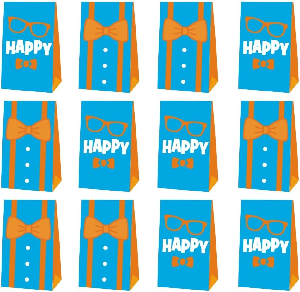 12 Pieces Orange Blue Goodie Bags for Birthday Party Supplies, Orange Blue Gift Snacks Treat Candy Party Bags for Kids Birthday Decorations