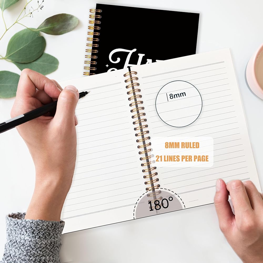 Size and Features:Measuring 5.5 x 8.3 inches, the notebook includes a sturdy cover that helps protect your notes. The interior pages are smooth and comfortable for writing. The spiral binding allows for easy page turning and a flat writing surface.