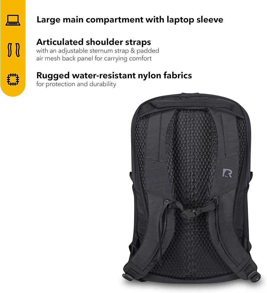 STERNUM STRAP – With an adjustable sternum strap, this womens and mens commuter backpack hugs tight to the body reducing sway when riding a bike or hiking. Large grab handle on top.