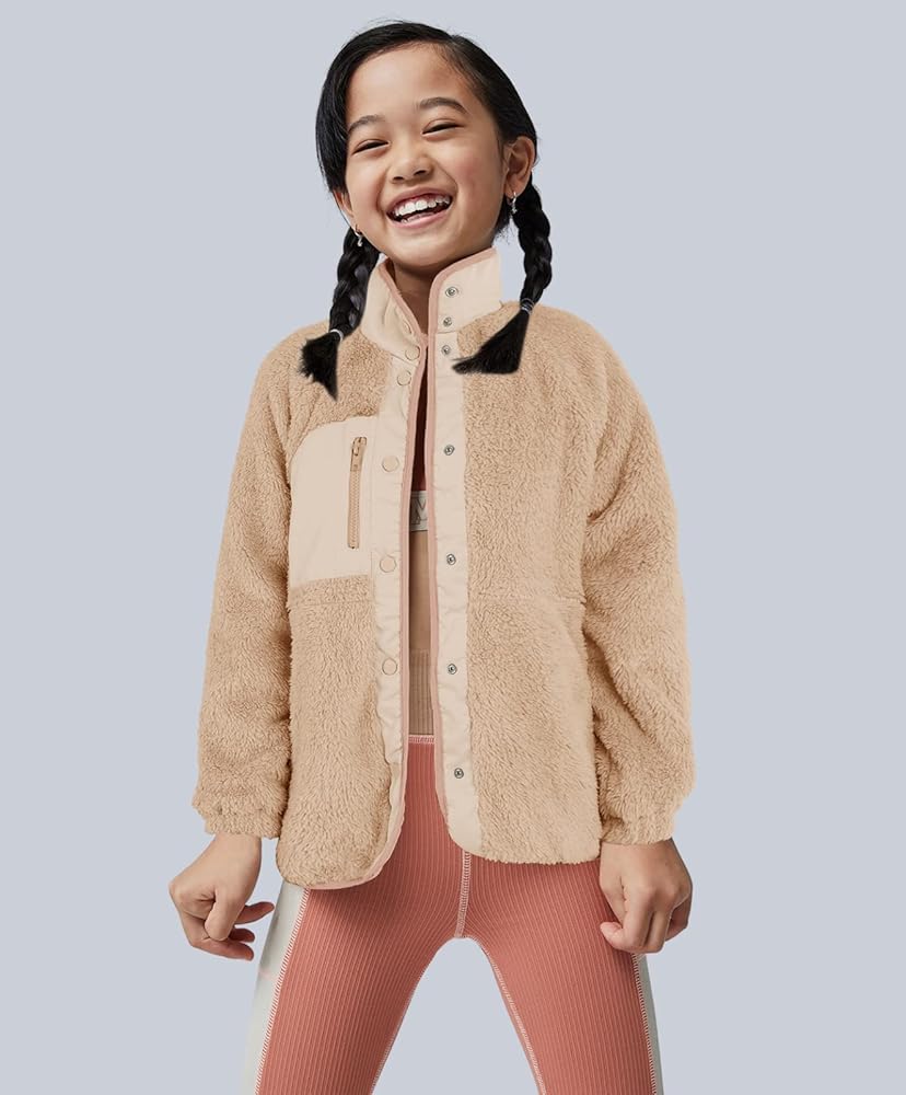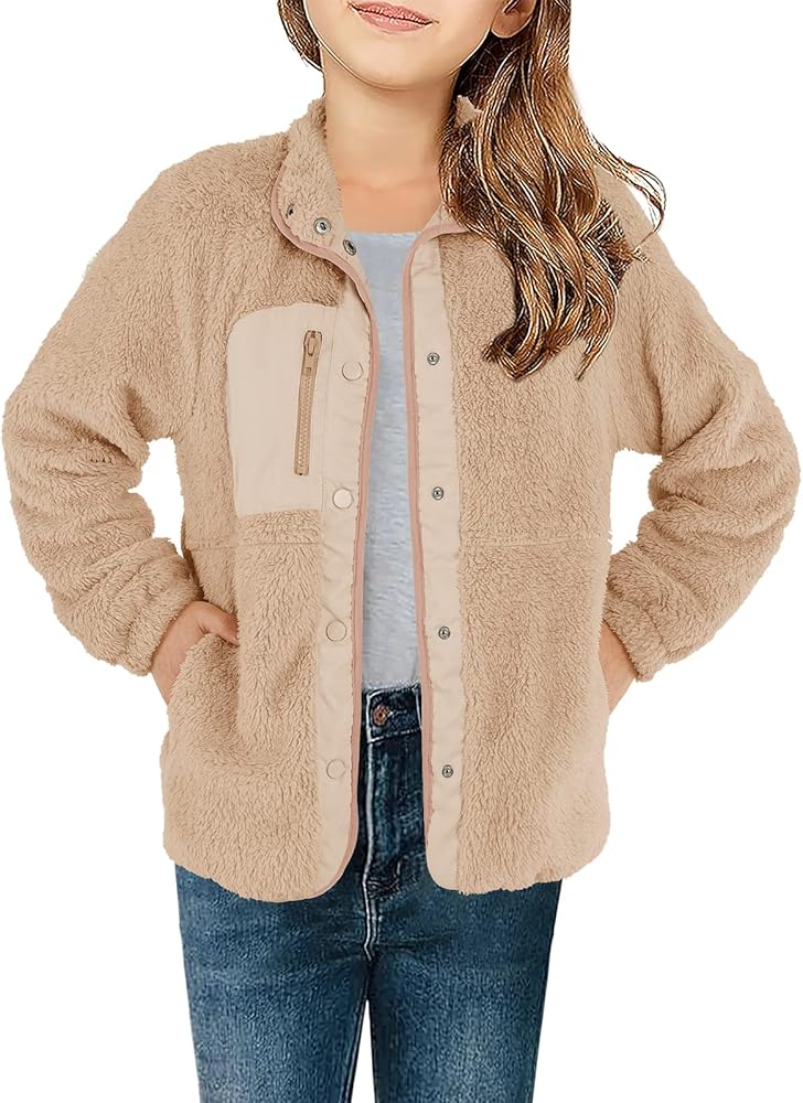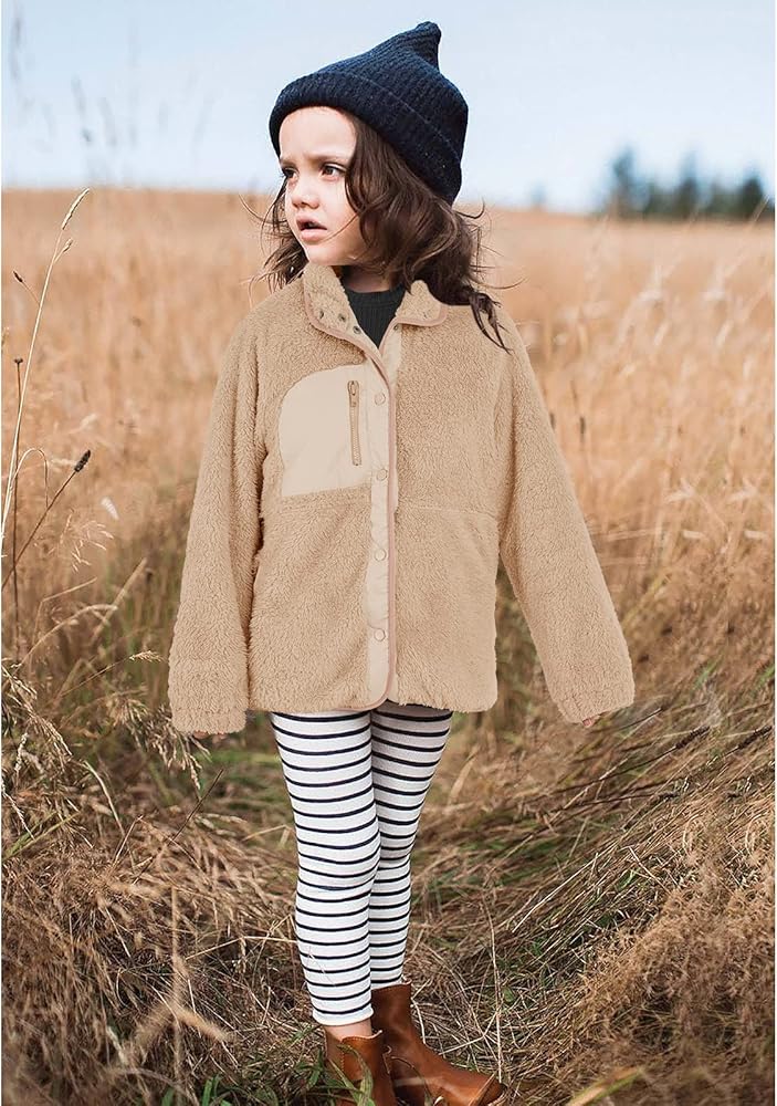 المزايا: سترة صوفية للفتيات، أكمام طويلة، طية صدر السترة، زر إغلاق كامل، جيب بسحاب في الصدر الأمامي، ثلاثة جيوب، كتلة سادة سادة، معطف شتوي فضفاض غير رسمي للفتيات والأطفال الصغار لفصل الربيع والخريف لمدة 5-14 عامًا.