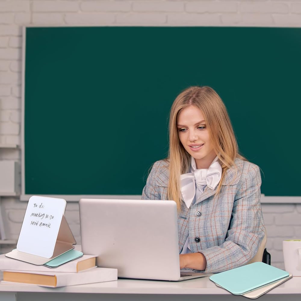This desk whiteboard set includes two 8x6 inches glass boards and two markers, encased in PU material. Suitable for adults alike, this small glass whiteboard can be applied as a planner, memo pad, or a to do list.