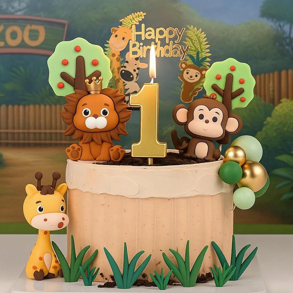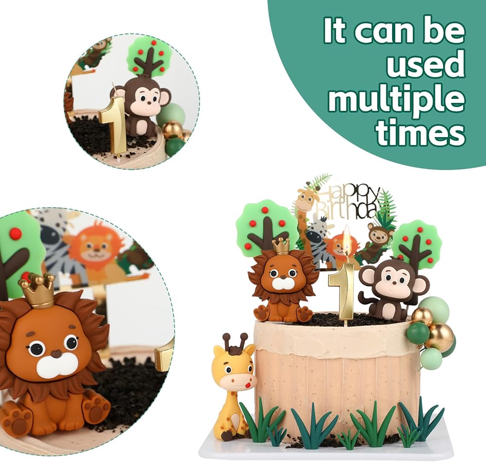 🦁【3D Animal Cake Toppers - Lion, Monkey, Giraffe】** Designed for 2st birthdays! Includes **3 realistic 3-inch tall animal figures** made of **flexible and durable PVC**, perfect as a cake centerpiece or party table decor