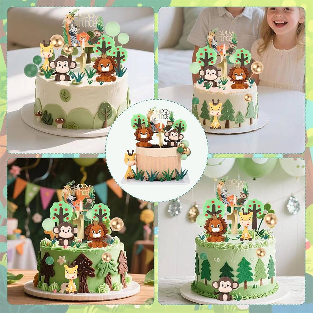 🌿【Complete Jungle Scene Kit - 21 Pieces】** Everything you need: **8 mini grass tufts, 2 apple trees, 6 decorative balls**, and more! Decorate cakes, cupcakes, or dessert tables in minutes