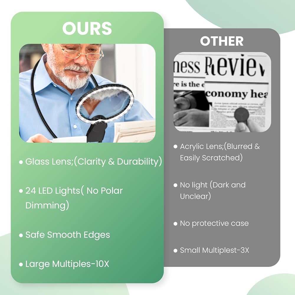 10X Neck Magnifying Glass with Light for Reading with Real Glass Lens, Hands Free Magnifying Glass with Light for Close Work, Flexible Gooseneck Large Magnifier for Cross-Stitching Sewing for Seniors