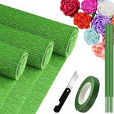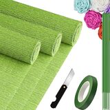 ما تحصل عليه: 3 لفات من الورق الكريب ، كل 8 أقدام بعرض 9.8 بوصات ، 15 فرع أخضر ، سكين حرفي ، لفة من شريط الحرف الأخضر بالإضافة إلى خدمة عملاء ودية وربنة من الورق المقوى
