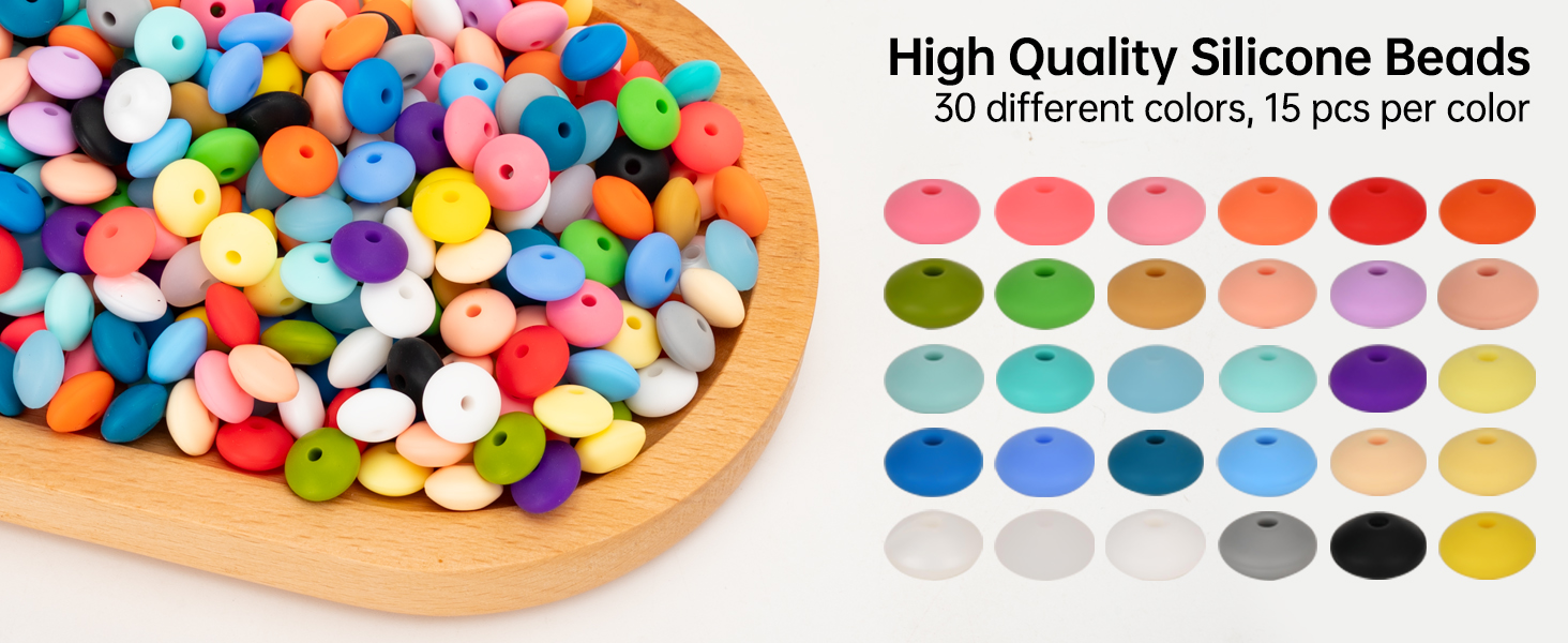 مجموعة حبة متنوعة: تشتمل حزمةنا على 450 قطعة من حبات العدس السيليكون 12 ملم في 30 لونًا مختلفًا حيويًا ، مع 15 حبة من كل لون ، مما يوفر مجموعة واسعة لتلبية جميع احتياجات الصياغة DIY الخاصة بك. تقديم إمكانيات لا نهاية لها لمشروعك الحرفي DIY