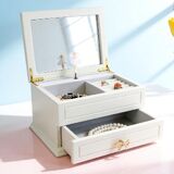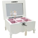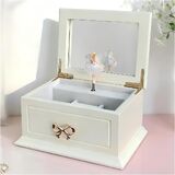 The Lihou PapaQ Wooden White Medium Ballerina Musical Jewelry Box for kids, a charming and elegant storage solution for little girls' treasures. This meticulously crafted jewelry box measures 7.5 inches (19.2 cm) in length, 35.5 inches (13.9 cm) in width, and 3.75 inches (9.2 cm) in height. Constructed from high-quality fiberboard and enhanced with a zinc alloy lock, plastic, and iron details, it showcases a stunning exterior painted in a soft pink hue. The interior is luxuriously lined with velvet, ensuring that her cherished jewelry remains safe and scratch-free. Key features include a delightful white exterior, a mirrored top for easy viewing, three ring slots, and two spacious side sections perfect for accommodating her beginner jewelry collection. Each time the box is opened, a graceful ballerina figure elegantly rises, captivating the imagination while the enchanting melody of "Swan Lake" plays softly in the background. This musical jewelry box is not only a functional piece but also a wonderful gift idea for special occasions. Whether it's for a birthday, holiday, or milestone celebration, it makes a thoughtful choice for sisters, nieces, daughters, or granddaughters. Give the gift of music and the joy of memories that they will cherish forever. Function meets fashion in our Pink Musical Jewelry Box—perfect for keeping her favorite rings and bracelets safe while adding a touch of elegance to her space. Make every moment memorable with this exquisite jewelry box designed to inspire and delight. -Caution: not recommended for children under 3 years of age,may conlain small parts which present a choking hazard for young children.