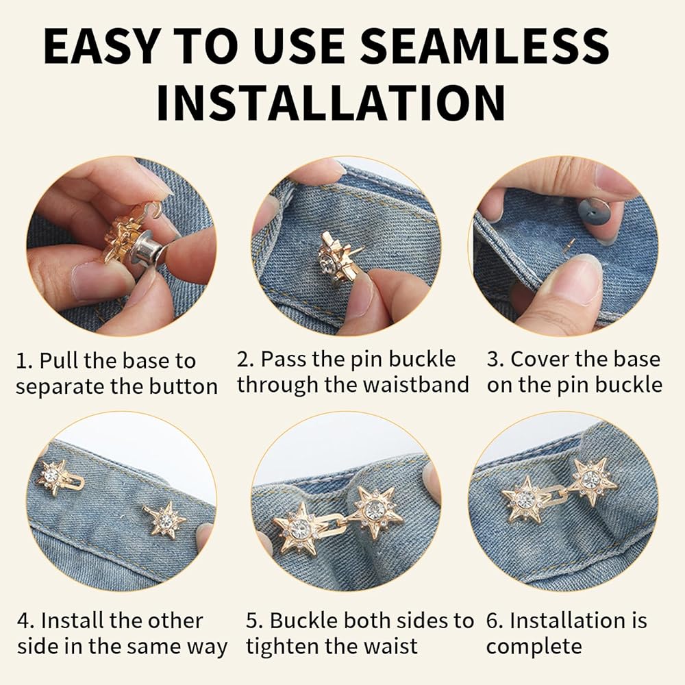 8 مجموعات أزرار محددة من الخصر القابلة للتعديل-دبابيس الخصر النجمة النجمة النجمة غير القابلة للانفصال ، فلازز مقطع نجم قابلة للفصل للسراويل/التنورة-إصلاح فضفاضة وفضية وذهبية