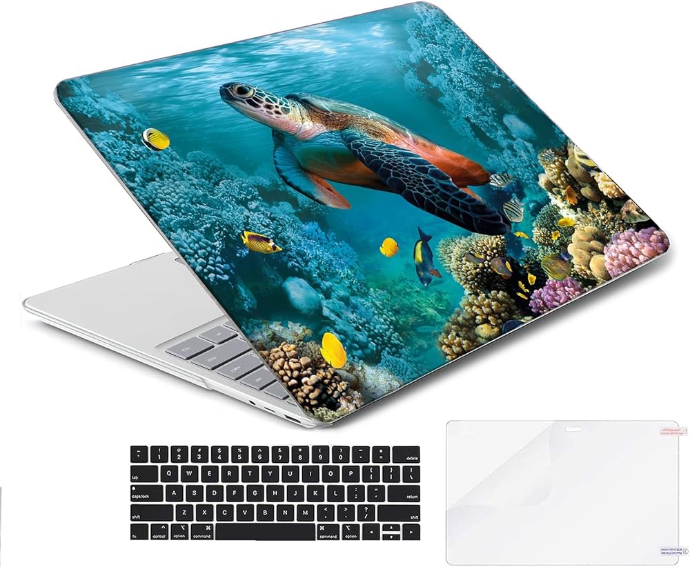 متوافق مع Microsoft Surface Laptop Go 2/1 12.4 بوصة قشرة واقية صلبة صلبة مع غطاء لوحة المفاتيح (النماذج: 2013 و 1943 ، 2022 2020) - سلحفاة البحر تحت الماء وشعاب المرجان