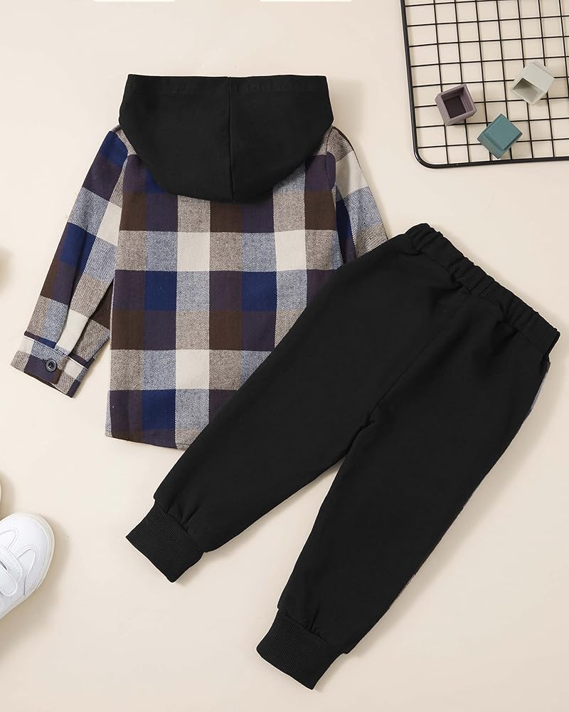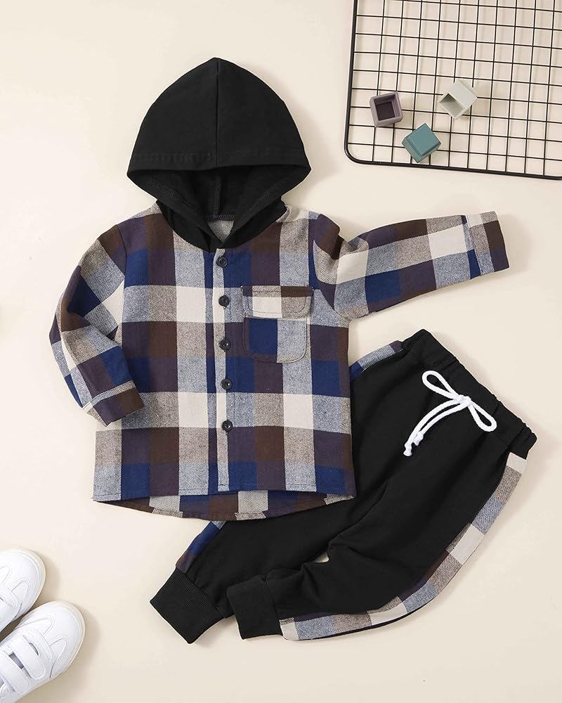 ملابس رائعة للأولاد الصغار في الخريف والشتاء: سترة بقلنسوة للأولاد باللون البني والأزرق الداكن والبرتقالي والأسود، وسراويل طويلة غير رسمية، أفضل هدية للأولاد في الخريف/الشتاء