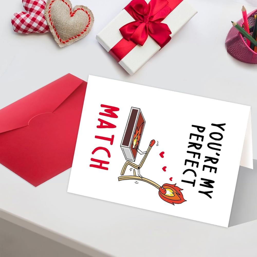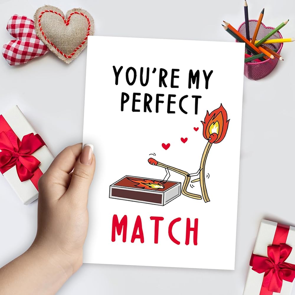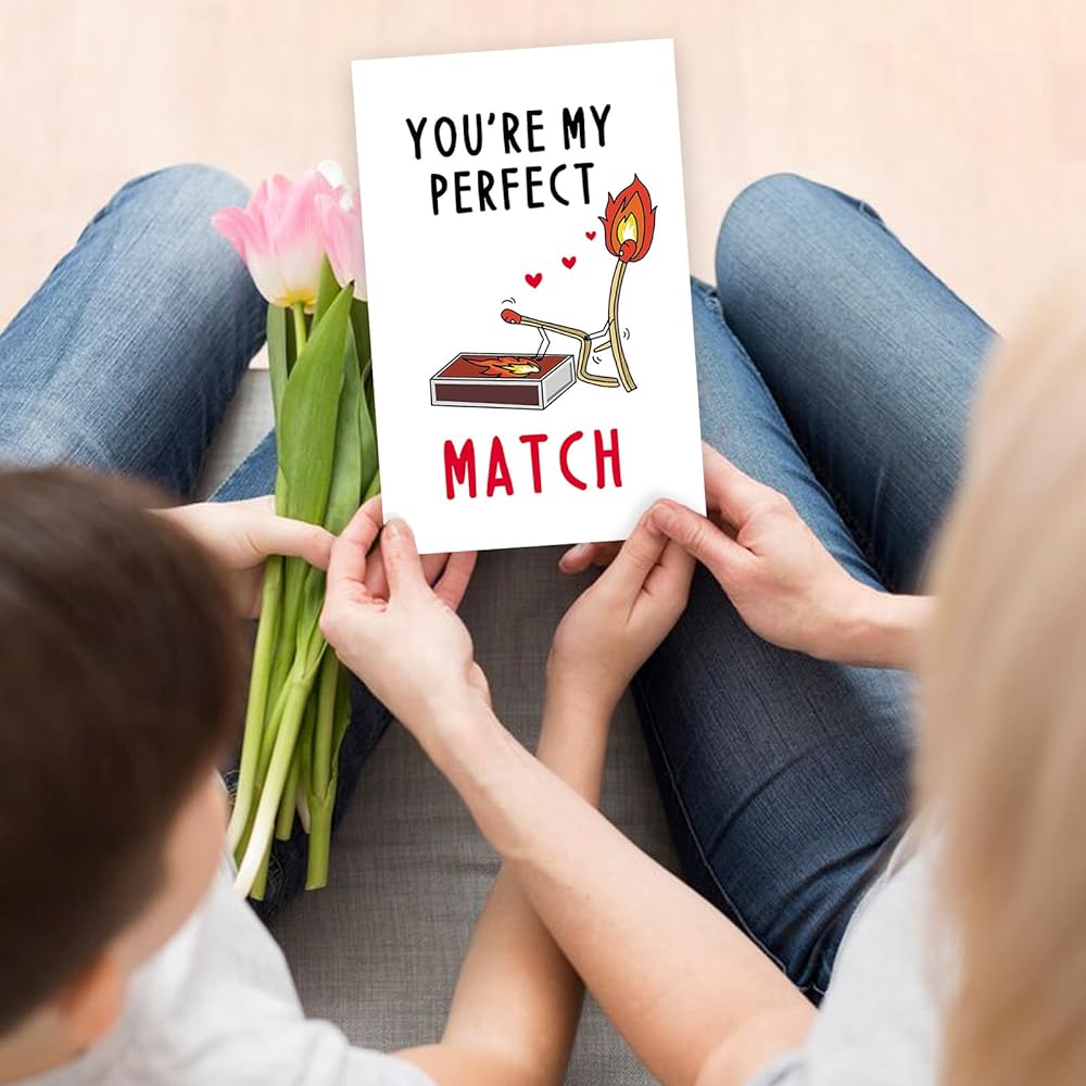 بطاقة هدايا عيد ميلاد مضحكة للرجال نساء ، بطاقة الذكرى السنوية الحب لصديقها ، هدية عيد الحب سعيد من صديقته ، أنت مباراة مثالية لي