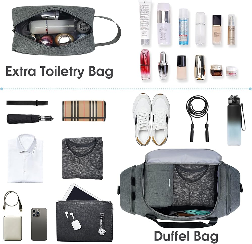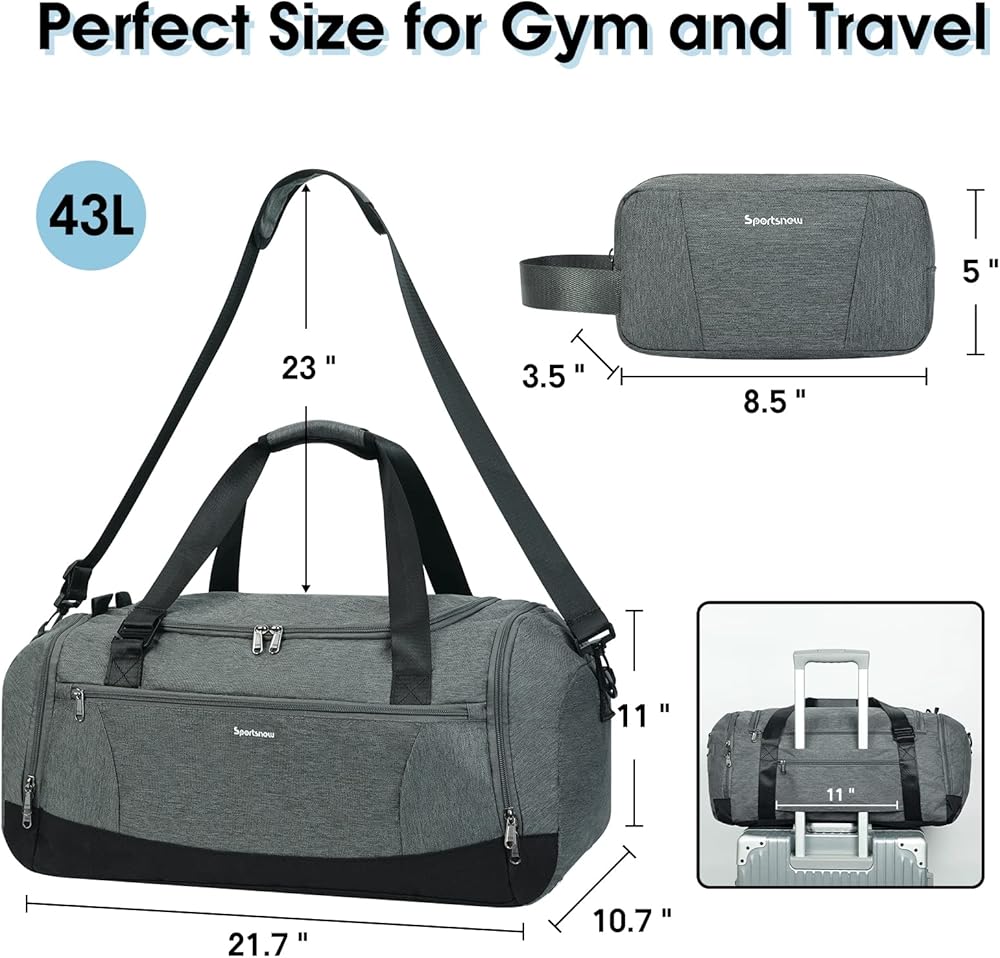 【حقيبة أدوات الزينة المجانية والأبعاد الإجمالية】 حقيبة أدوات الزينة المجانية تحافظ على أدوات الزينة الخاصة بك أو غيرها من الضروريات الصغيرة للعمل أو اللعب منظمة وفي متناول يدك. يمكن استخدامها كتخزين يومي على خزانة الملابس أو حوض الحمام، ويمكن أيضًا وضعها في حقيبة صالة الألعاب الرياضية أو حقيبتك. ويبلغ حجم حقيبة الصالة الرياضية هذه 21.6 × 10.6 × 11 بوصة (طول × عرض × ارتفاع) بسعة 43 لتر. إنها مصنوعة من أقمشة مقاومة للماء وسحابات متينة يمكنها تحمل سنوات من الاستخدام المتكرر.