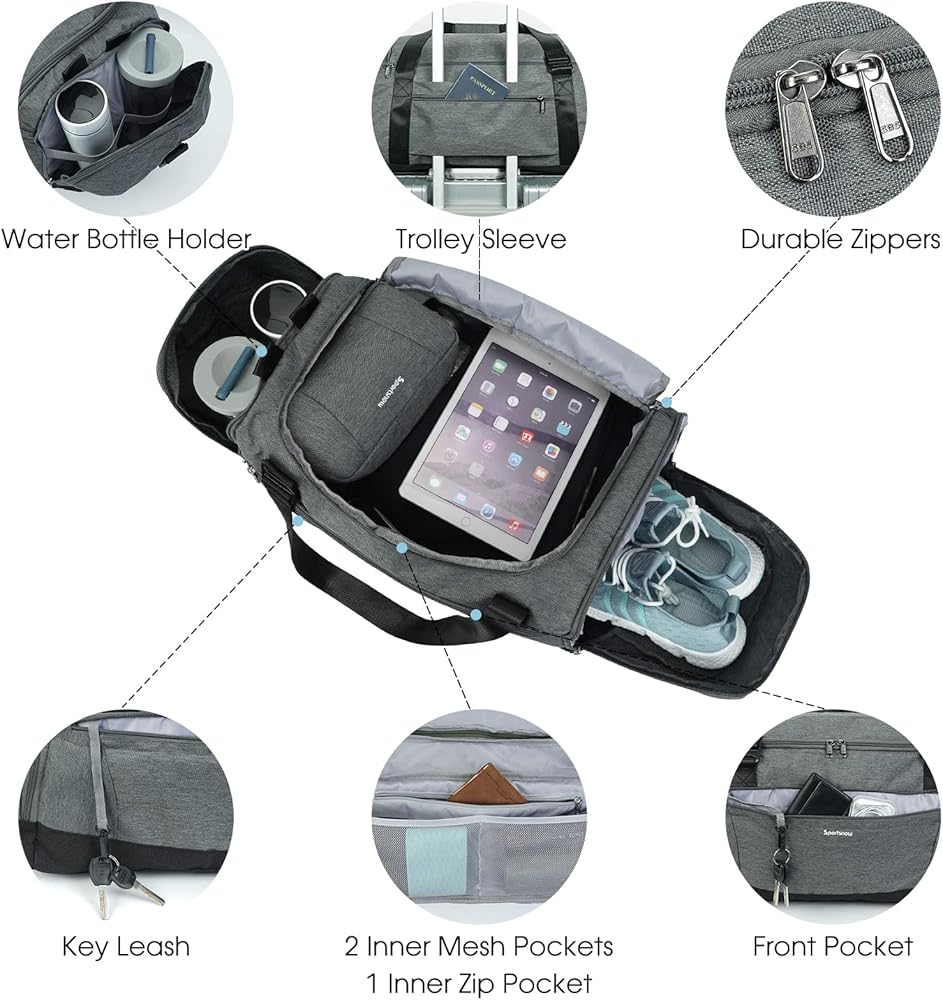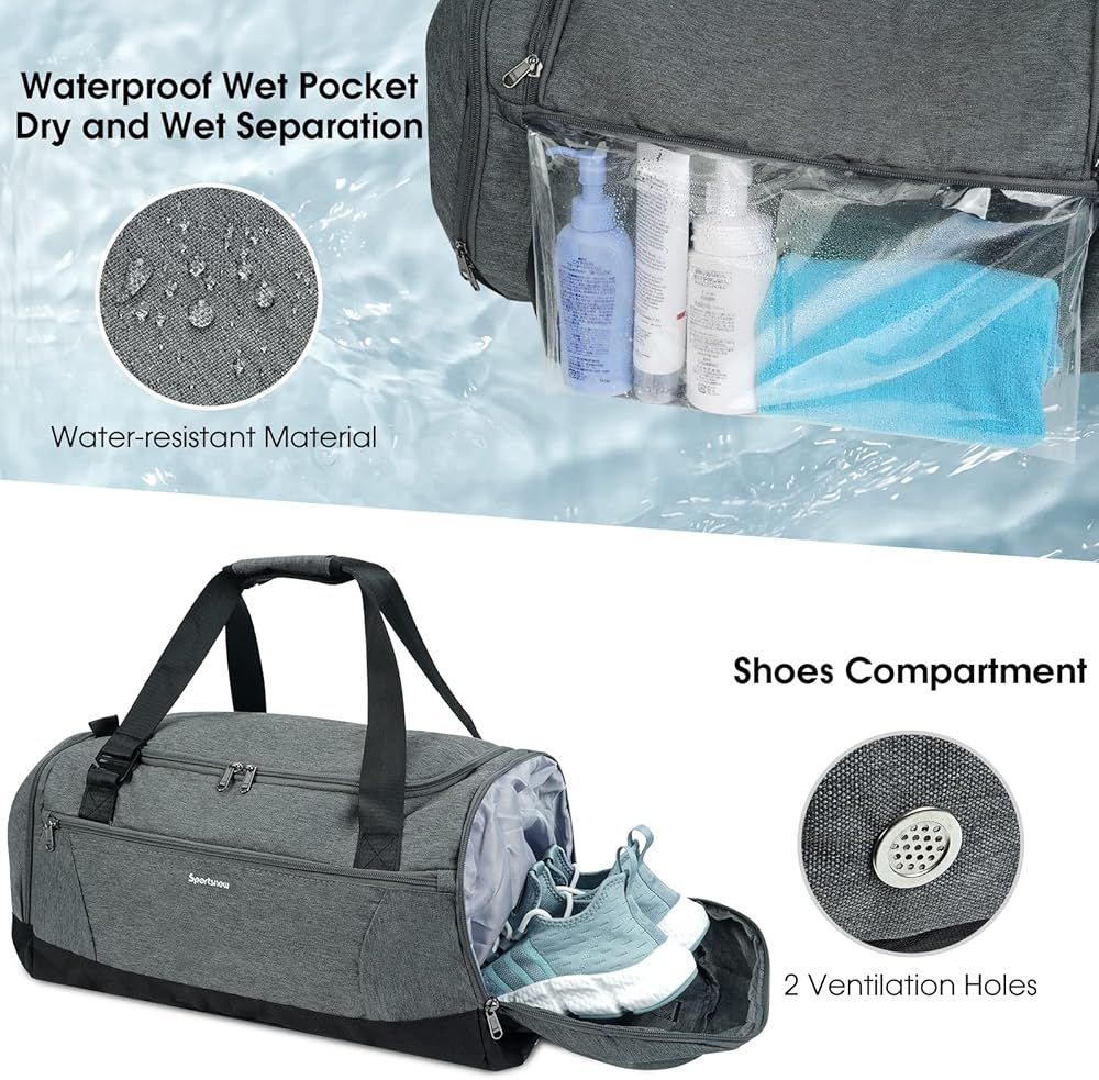 【حجرة الأحذية والجيب المبلل】 يمكنك استخدام الحجرة المنفصلة على جانب الحقيبة لتعبئة زوج إضافي من الأحذية وفتحات التهوية تضمن دوران الهواء والانتعاش بالداخل. وفي الوقت نفسه، مجهزة بحجرة مبللة، يمكنك أيضًا فصل المناشف المبللة وملابس السباحة والغسيل المتسخ.