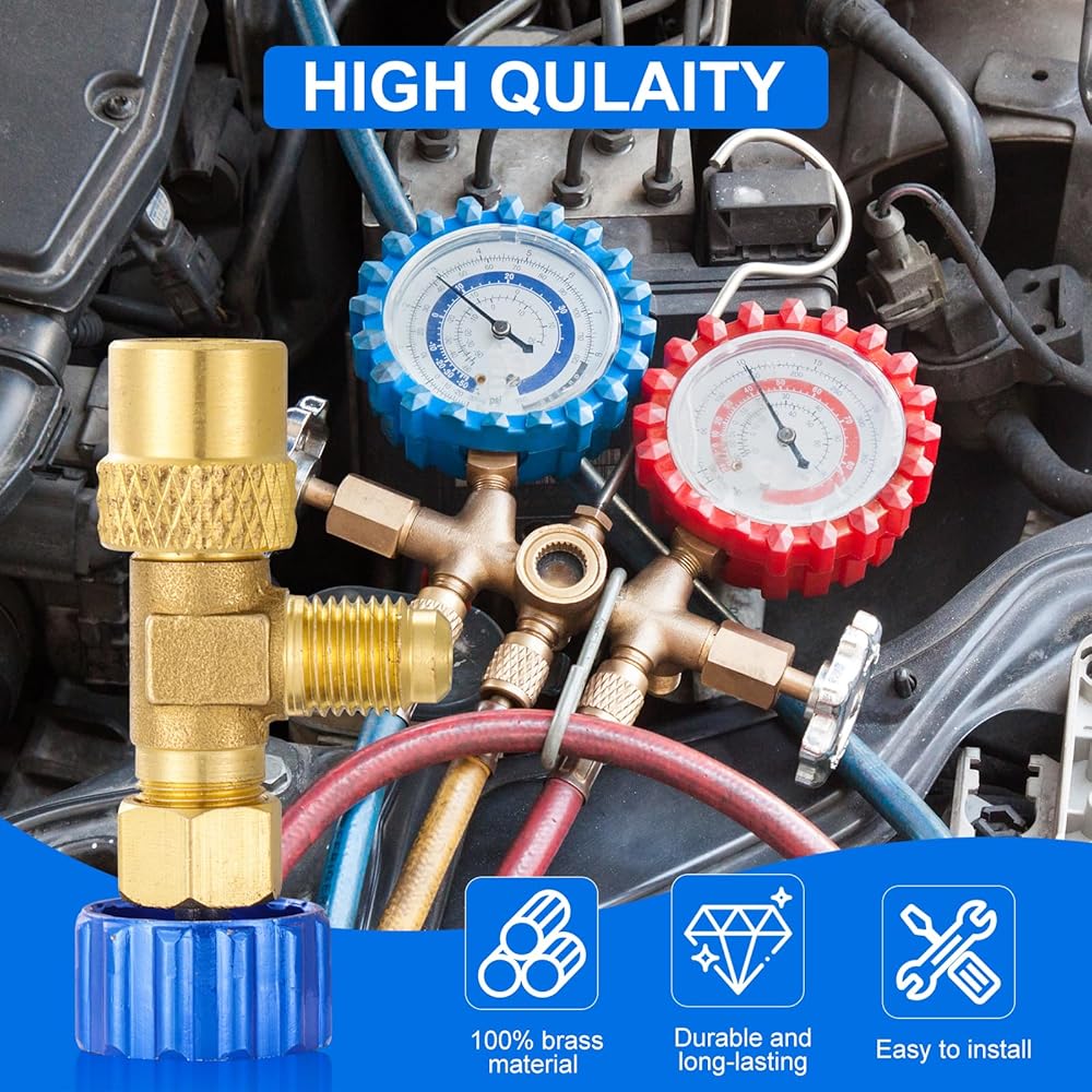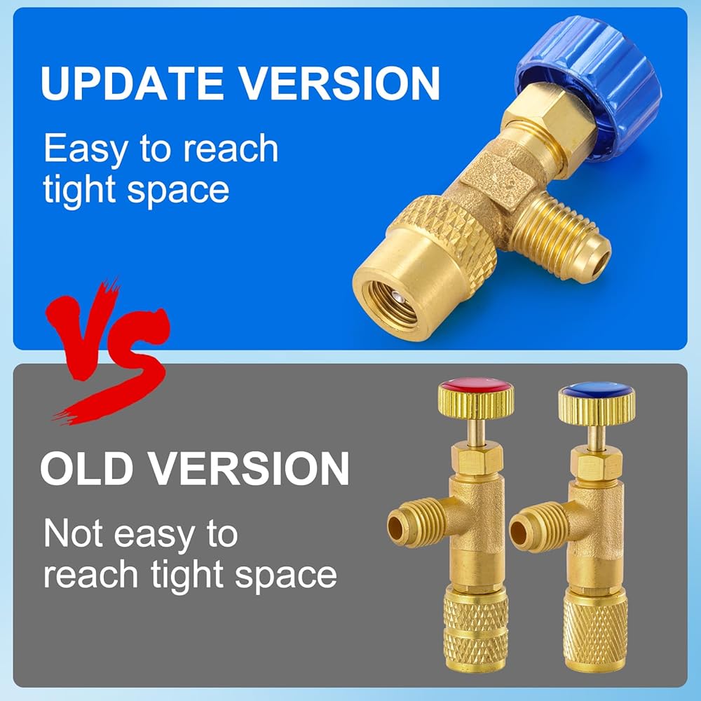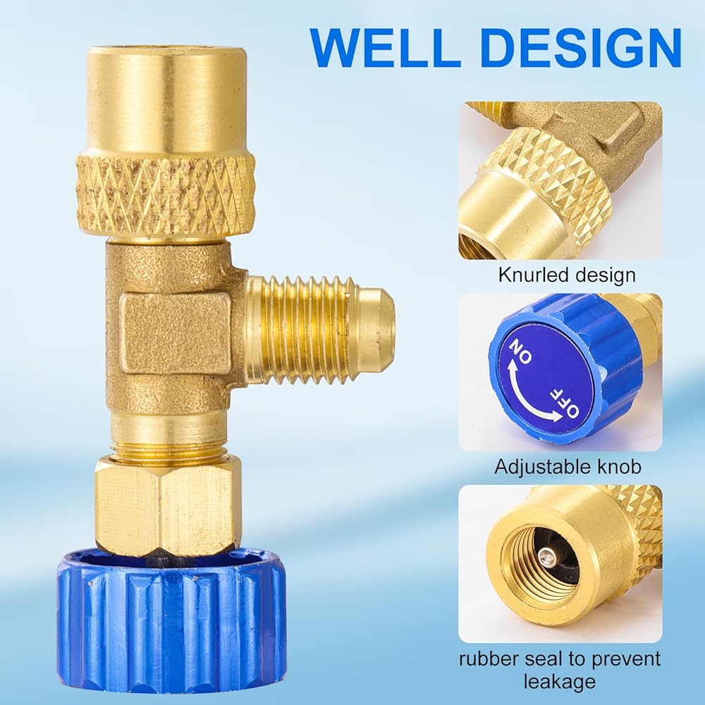 𝐒𝐀𝐅𝐄𝐓𝐘 & 𝐂𝐎𝐍𝐕𝐄𝐍𝐈𝐄𝐍𝐂𝐄: صمام شحن المبردات الأزرق R12 R12 R12 أمر سهل ومريح للوصول إلى مساحة ضيقة ، وتصميم بسيط للربط للتوصيل لشحن المبرد السريع بدون أدوات ، وأداة أمان قيمة.