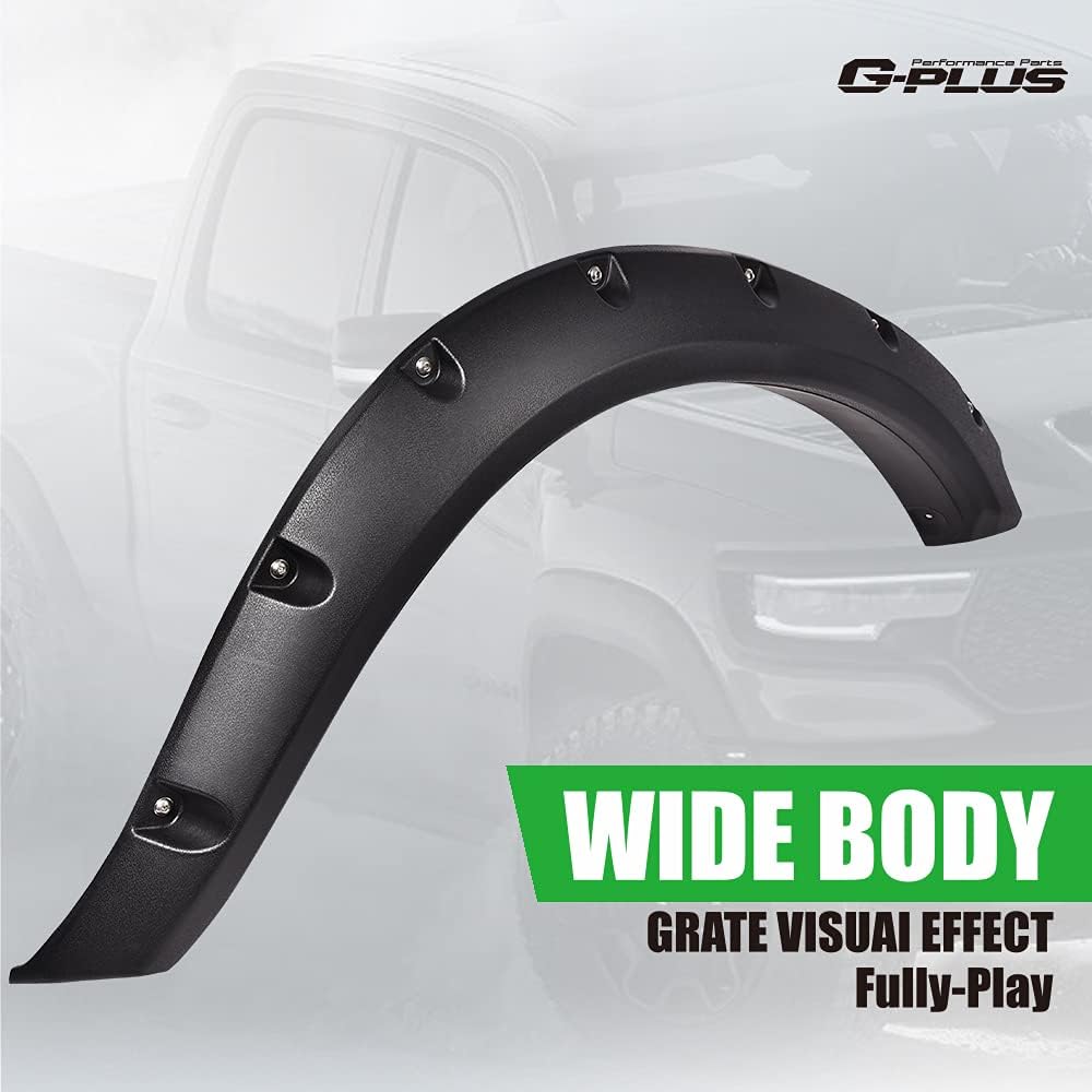 • نمط عدواني على الطرق الوعرة: فإن المشاعل الخارجي والعرة المخصصة مع المسامير الفولاذ المقاوم للصدأ سوف تكمل مظهر سيارتك. يعطي جسم واسع الشاحنة الصغيرة أسلوبًا على الطرق الوعرة. توفر تغطية الإطارات الأمامية والخلفية 2 بوصة (حوالي 5.1 سم) تغطية إضافية للإطارات الأكبر.
