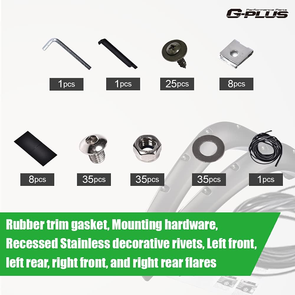 • سهولة التثبيت: يوصى بشدة بالتثبيت المهني ، وقد تكون هناك حاجة إلى بعض الحفر. يتضمن اثنين (2) مشاعل الحاجز الأمامي واثنين (2) المشاعل الخلفية Fender ، أجهزة التثبيت ، إلخ.