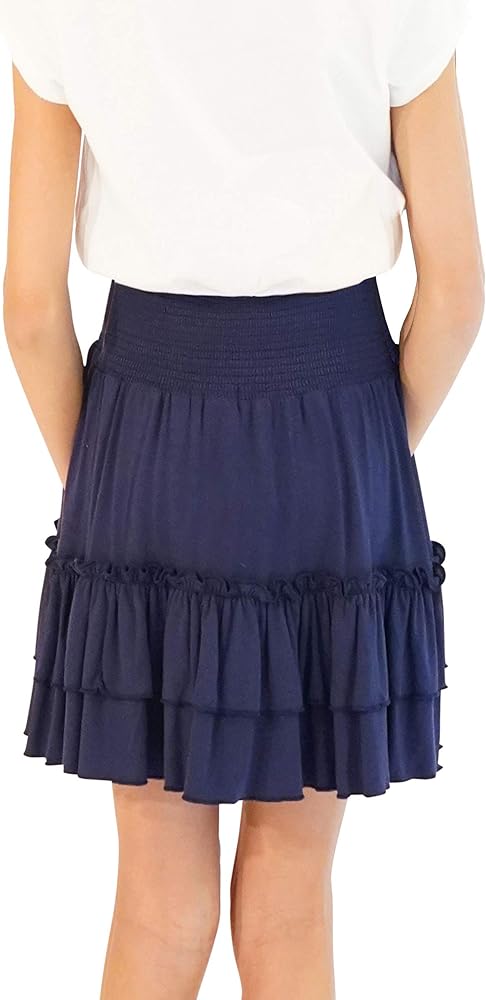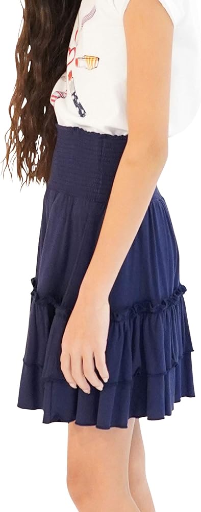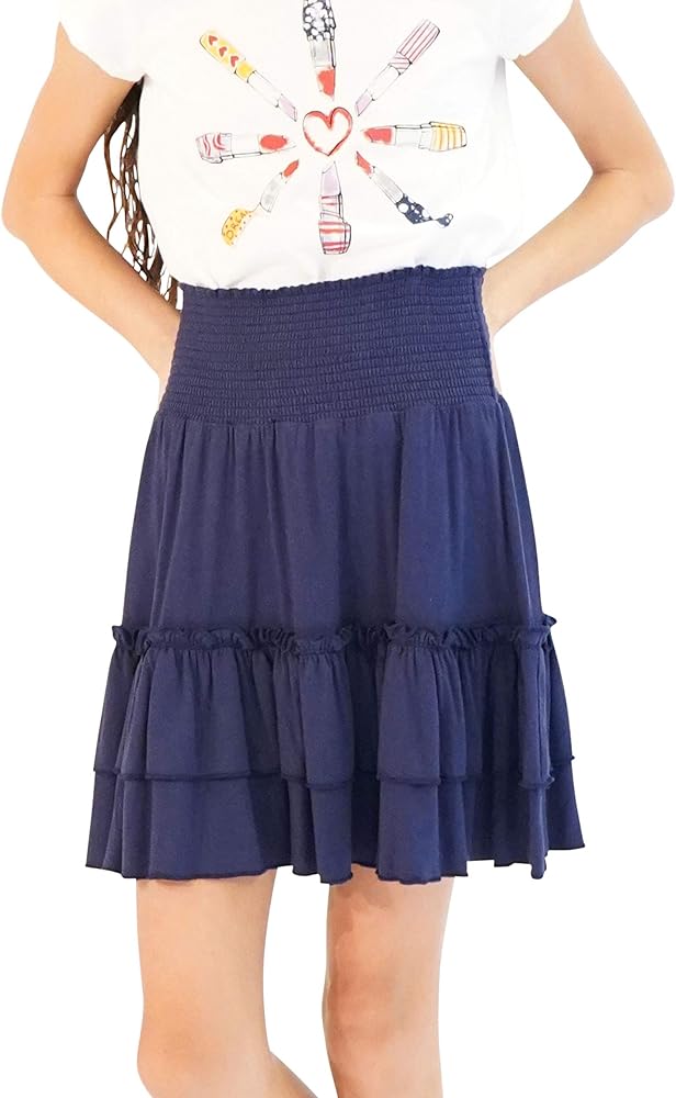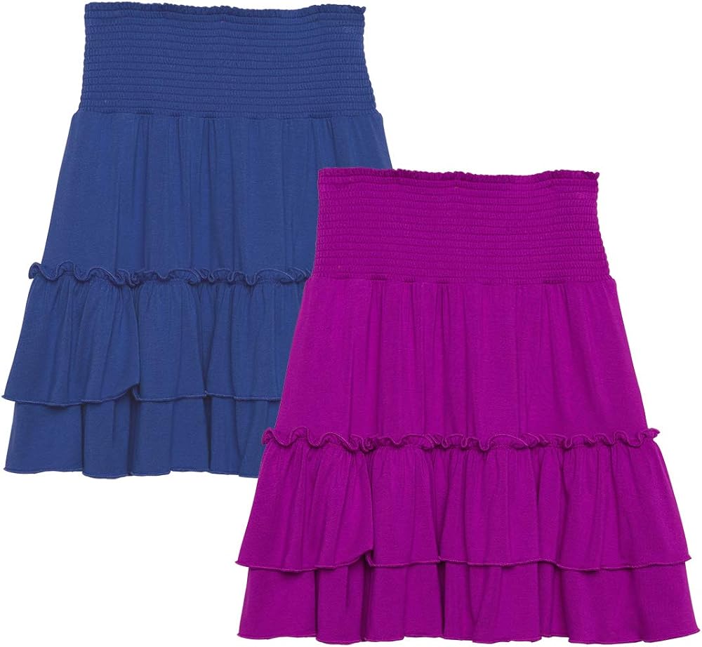 KIDPIK قطعتان من التنانير ذات الطبقات - تنورة بطول الركبة للفتيات من عمر 4 سنوات فما فوق - ملابس محتشمة مريحة - لونين/مجموعة