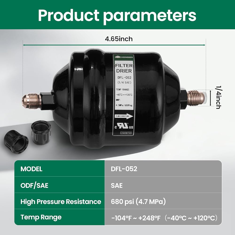 • 4. يقلل الرطوبة والملوثات: يدمج غربال جزيئي يساعد على تقليل الرطوبة والملوثات داخل النظام ، ودعم التشغيل الفعال وتوسيع عمر HVAC والمعدات التبريد