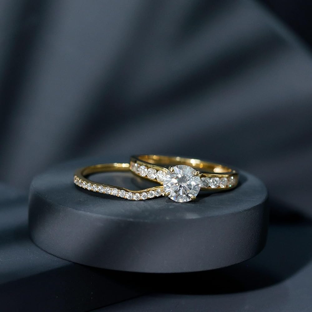 أدلي ببيان مذهل في يومك الخاص مع مجموعة الخاتم المذهلة من 2. مزيج من خاتم الخطوبة في Moissanite Solitaire وفرقة الزفاف ، هذه المجموعة تتخيلًا مثاليًا للشخص الذي تريد قضاء بقية حياتك معه.