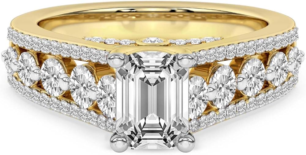 Diamonds ودية مشعة قطع الخاتم الماسي الشرارة - وزن الماس الحجري المركز هو 3 قيراط ، محاطة بتقسيم الماس الدائري على شكل دائري 7/8 ct.tw. (0.91 ct.tw.) ، مقابل الوضوح ، اللون fg- ، متوفر الذهب 14k/18k أو البلاتين ، عدد الحجارة- 59