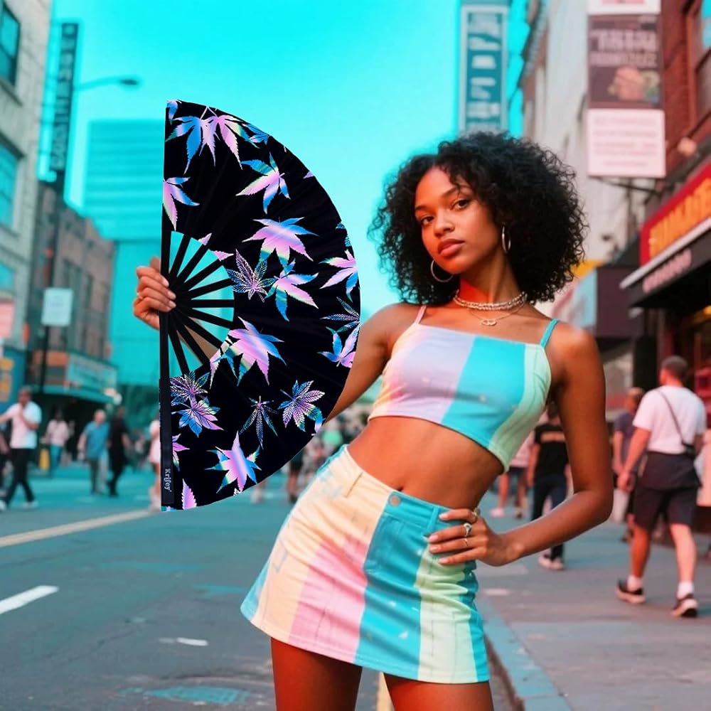 توهج مثل النجم: تحت الأشعة فوق البنفسجية أو Blacklight ، يصبح المعجب الخاص بك سلاح الحزب النهائي. ألوان مستوحاة من النيون تطفو وتألق ، مما يجعلك أبرز ما في أي غرفة مظلمة أو هذيان ليلية.