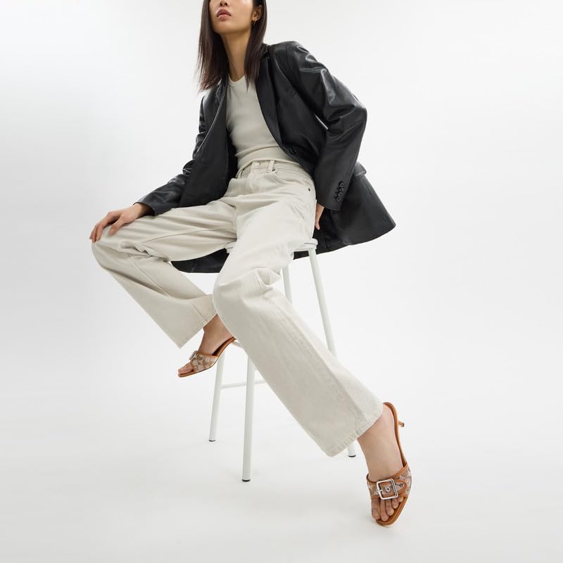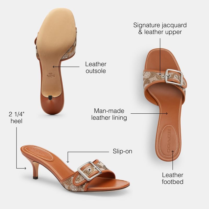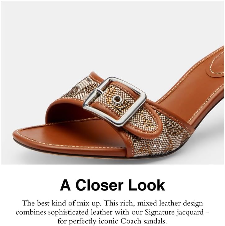 • Signature Jacquard & Leather: The best kind of mix up. This rich, mixed leather design combines sophisticated leather with our Signature jacquard - for perfectly iconic Coach sandals