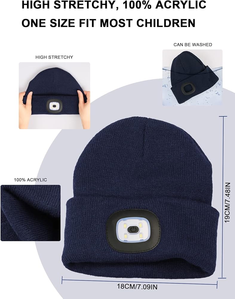 يحتوي ضوء LED الذي تم إدخاله في القبعة الخفيفة على أربعة (4) مصابيح ويمكن إزالتها بسهولة ، والتي يمكن أن تضيء المسافة على بعد 30 قدمًا. مع ثلاثة (3) إعدادات سطوع قابل للتعديل. توفير 120 لومن وما يصل إلى 4 ساعات من الاستخدام المستمر أو 68 ساعة من الاستخدام المتقطع الواقعي. يوفر قبعة Beanie Led المضاءة إضاءة خالية من اليدين لا تصدق لإيجاد طريقك في الظلام.