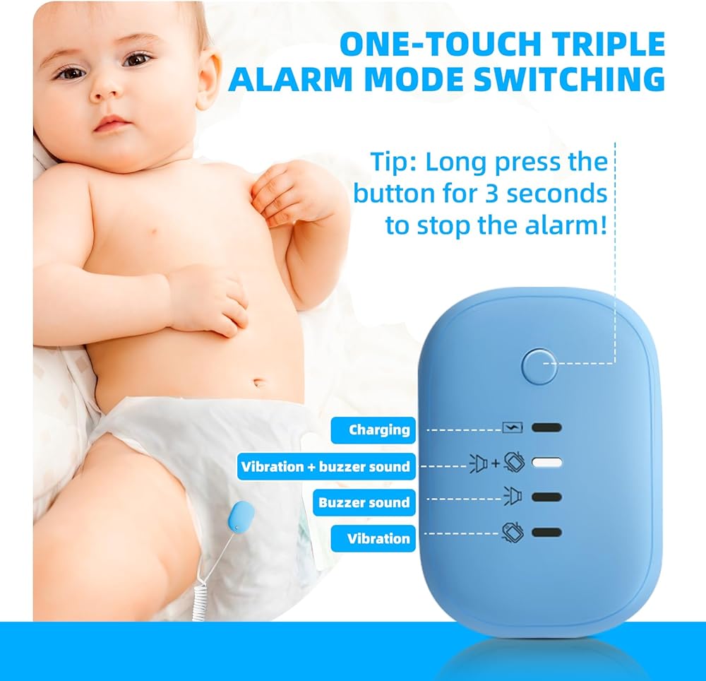 𝐇𝐢𝐠𝐡𝐥𝐲 𝐒𝐞𝐧𝐬𝐢𝐭𝐢𝐯𝐞 𝐒𝐞𝐧𝐬𝐨𝐫 𝐒𝐞𝐧𝐬𝐨𝐫: تم تجهيز إنذار التبول المتقدم بمستشعر حفاضات متقدم يكتشف بدقة ودقة وجود البول ، مما دفع الطفل إلى الاستيقاظ والذهاب إلى الحمام في الوقت المناسب. يوفر الجهاز ثلاث أوضاع: اختر من بين الصوت فقط ، والاهتزاز فقط ، والصوت مع الاهتزاز لتناسب احتياجات طفلك. إن المنبه مرتفع بما يكفي لإيقاظهم ولكنه لطيف بما يكفي لتحفيز الأذنين ، مما يضمن تدريبًا فعالًا دون تعطيل النوم.