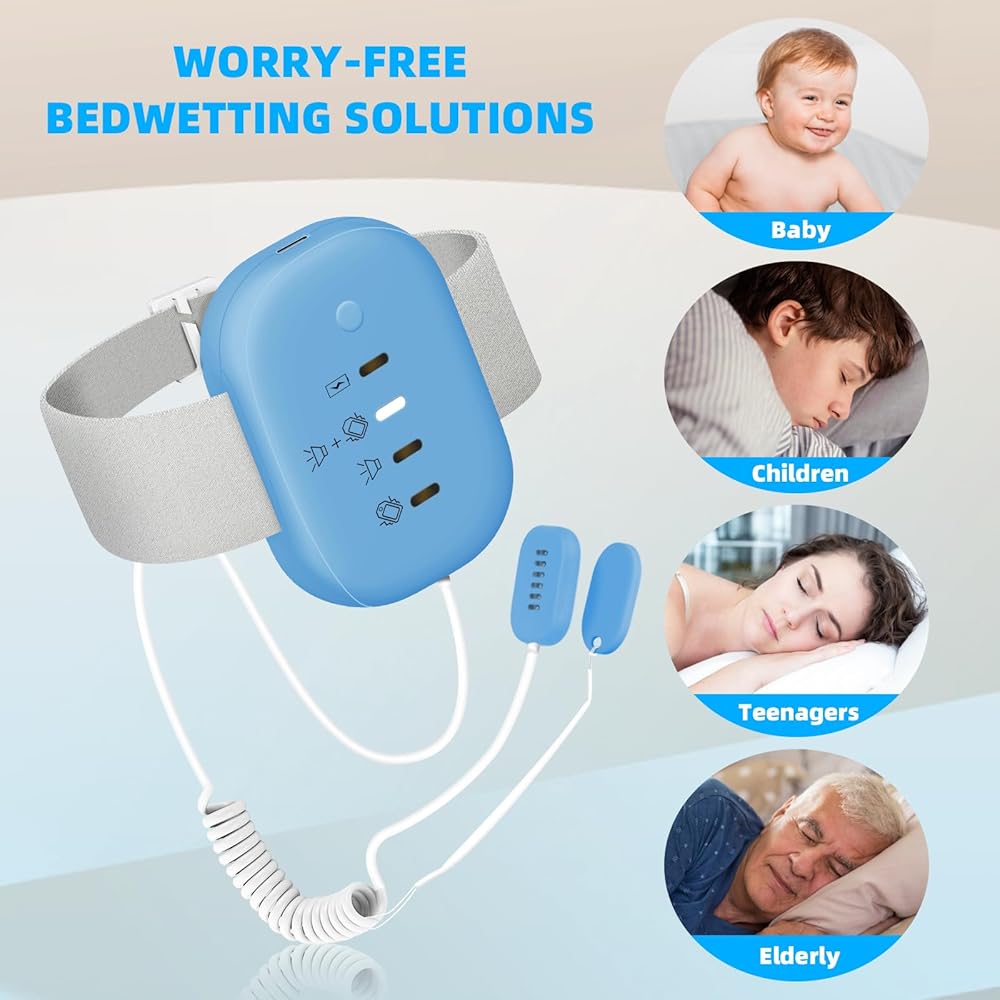 إنذار ترطيب السرير للبنين والبنات: USB قابلة لإعادة الشحن ، 3 أوضاع تذكير ، إنذارات في التغلب على مراسك مع مستشعر حساسية عالي ، صوت عالٍ واهتزاز قوي ، حل مثبت لتوترات الفراش (الأزرق)