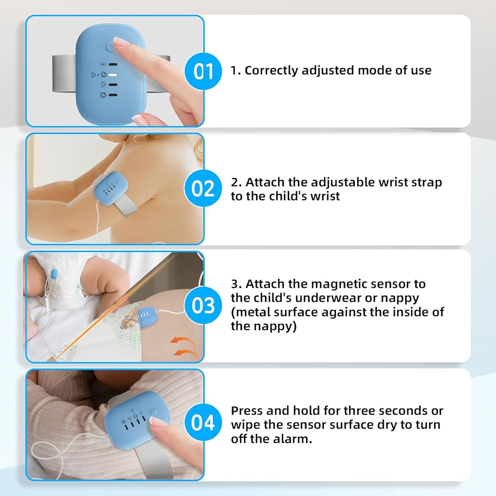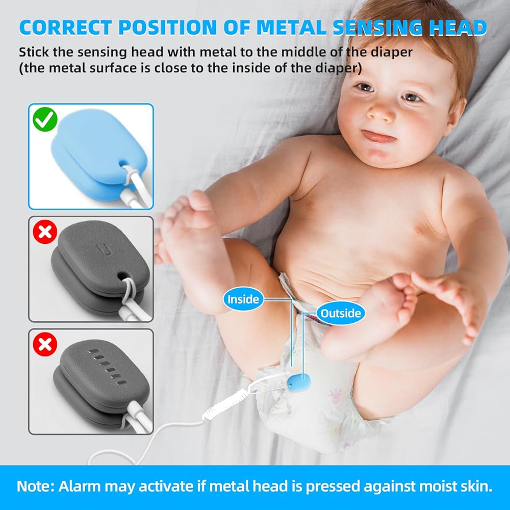 𝐏𝐨𝐭𝐭𝐲 𝐓𝐫𝐚𝐢𝐧𝐢𝐧𝐠 𝐀𝐥𝐚𝐫𝐦: تكتشف أجهزة الاستشعار الموثوقة أول قطرة من البول والإنذار على الفور يستيقظ الطفل على الاهتزازات والصورة ، مما يساعدهم على تحسين مشكلة في التغذية. نصائح: لإيقاف الجهاز ، اضغط مع الاستمرار على زر التبديل لمدة 3 ثوانٍ أو تجفيف سطح المعدن الخاص بالمستشعر.