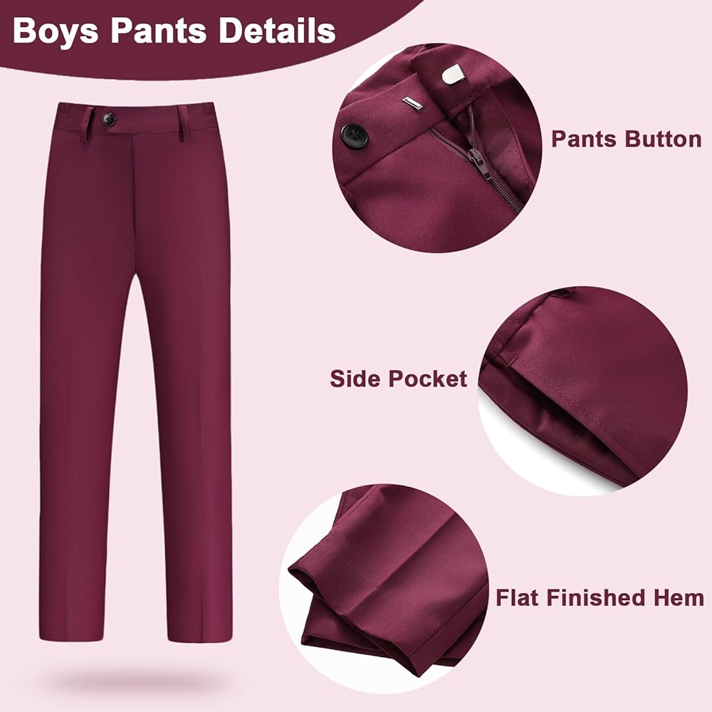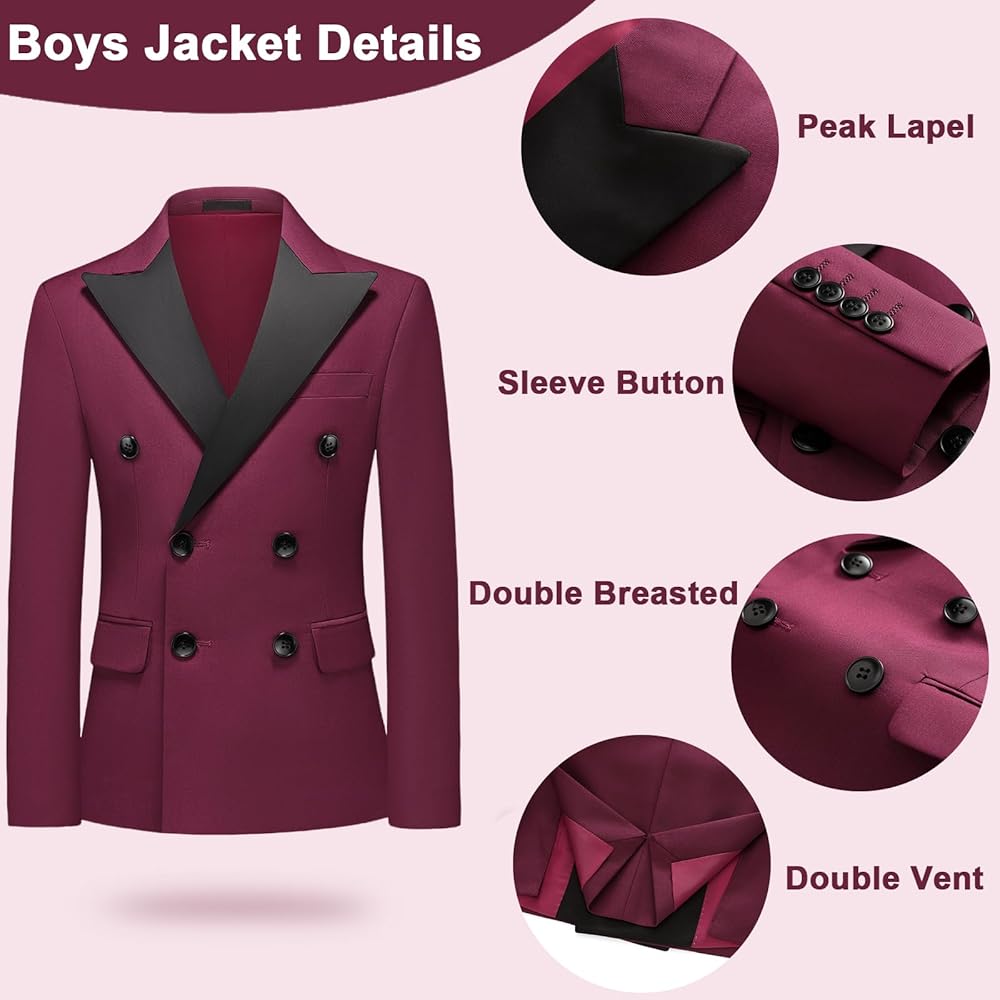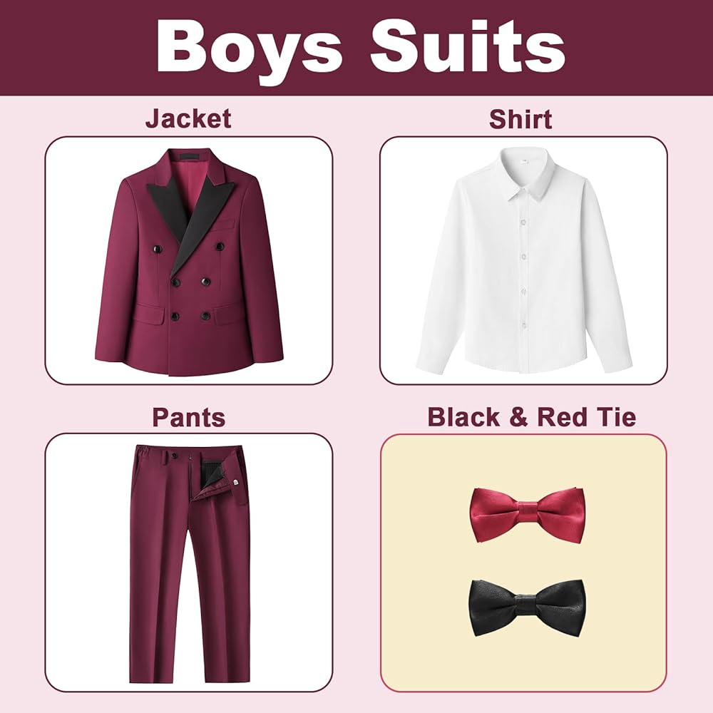• 5 قطع من الأولاد بدلة: تتكون بدلة الأولاد من سترة مزدوجة الصدر ، وقميص أبيض ، وزوج من السراويل وربطين من القوس (أحمر وأسود). تم تصميم سترة الأولاد مع زر مزدوج الصدر وذروة الذروة ، والتي يمكن أن تناسب شخصية طفلك بشكل أفضل ، وتجعلها أكثر ملاءمة للرياضة ؛ تطابق مع مناسبات مختلفة.