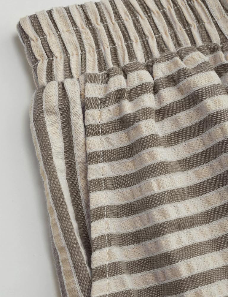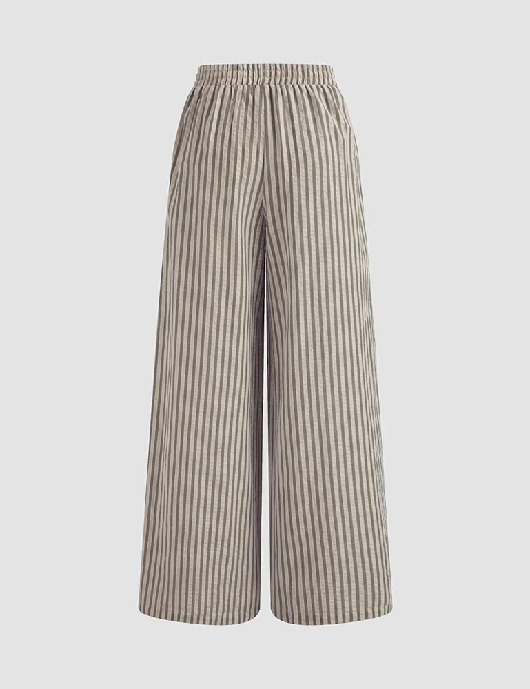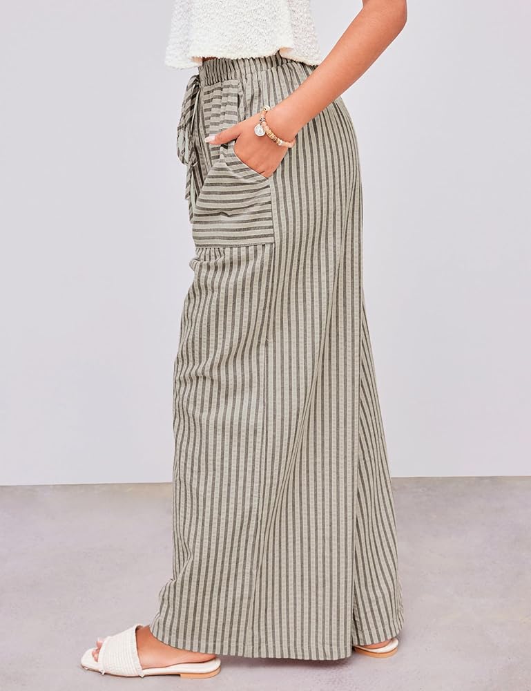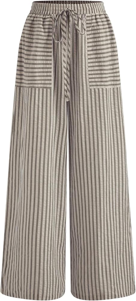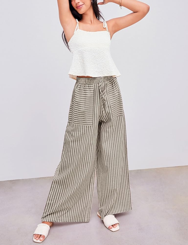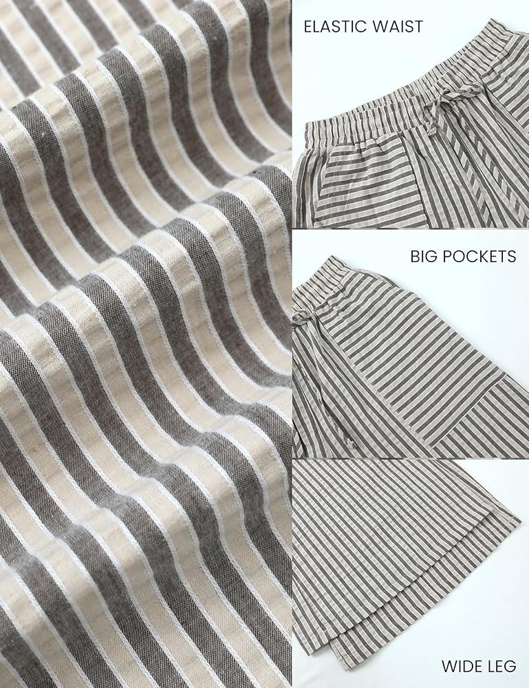 features : بنطلون صيفي مخطط تصميم مع خصر متوسط الارتفاع ، صورة ظلية عريضة الساق ، جيوب جانبية وظيفية ، وتناسب فضفاض لجميع أنواع الجسم