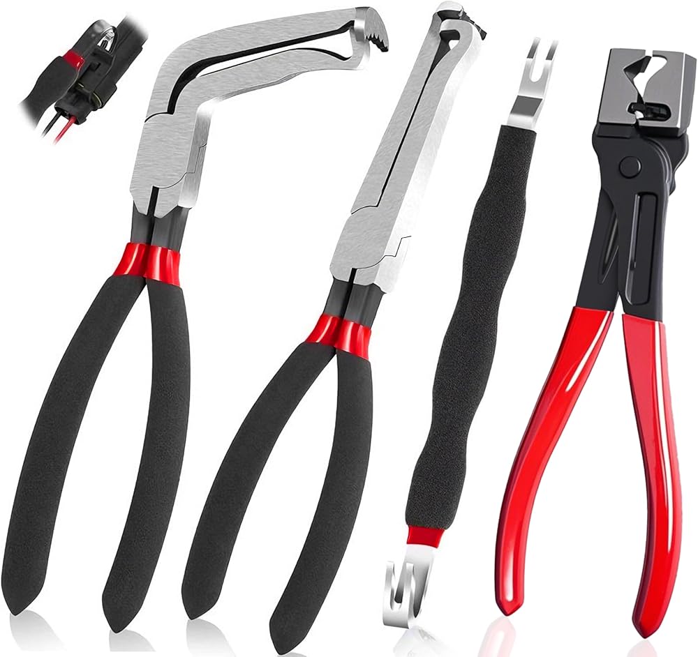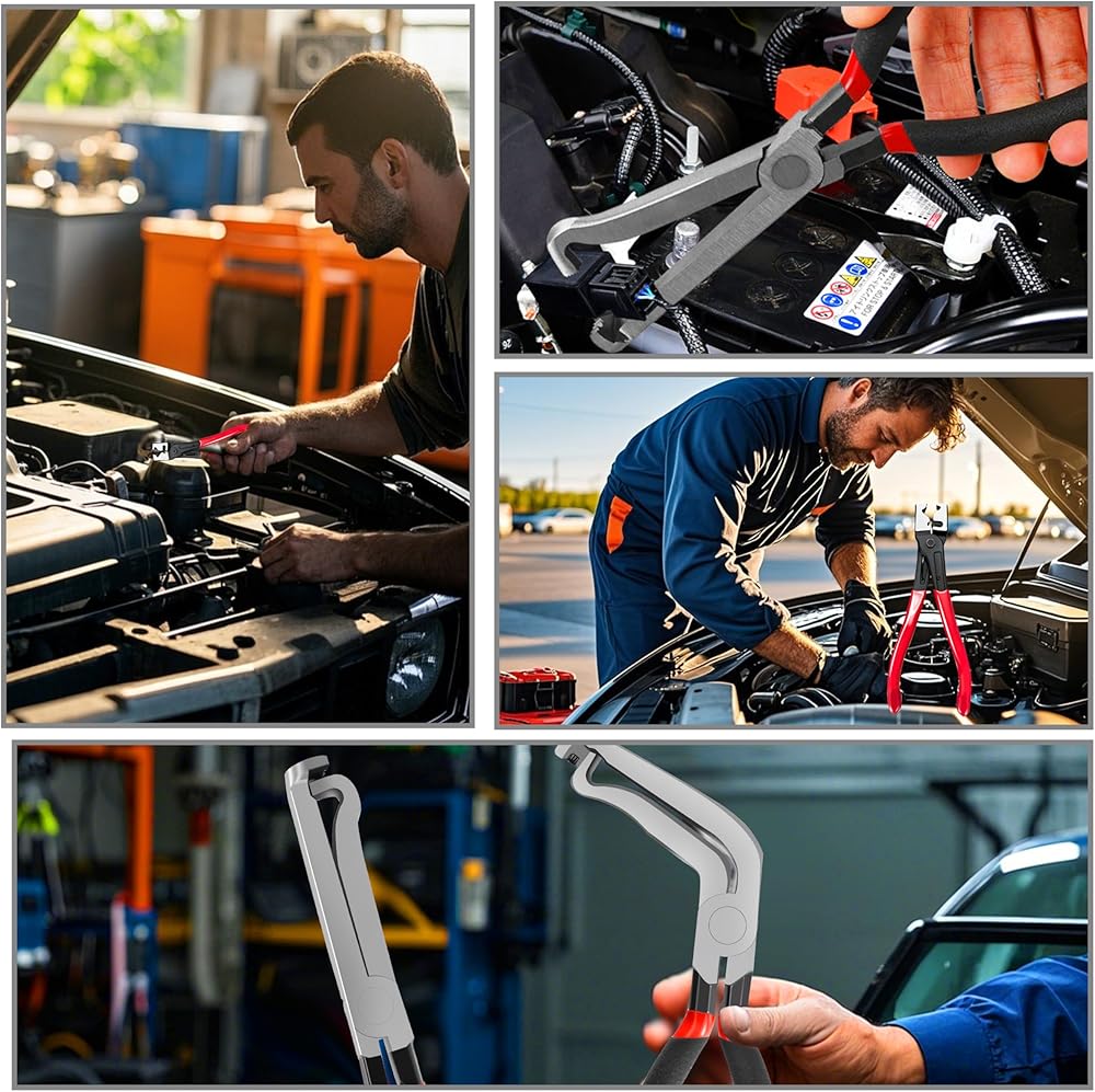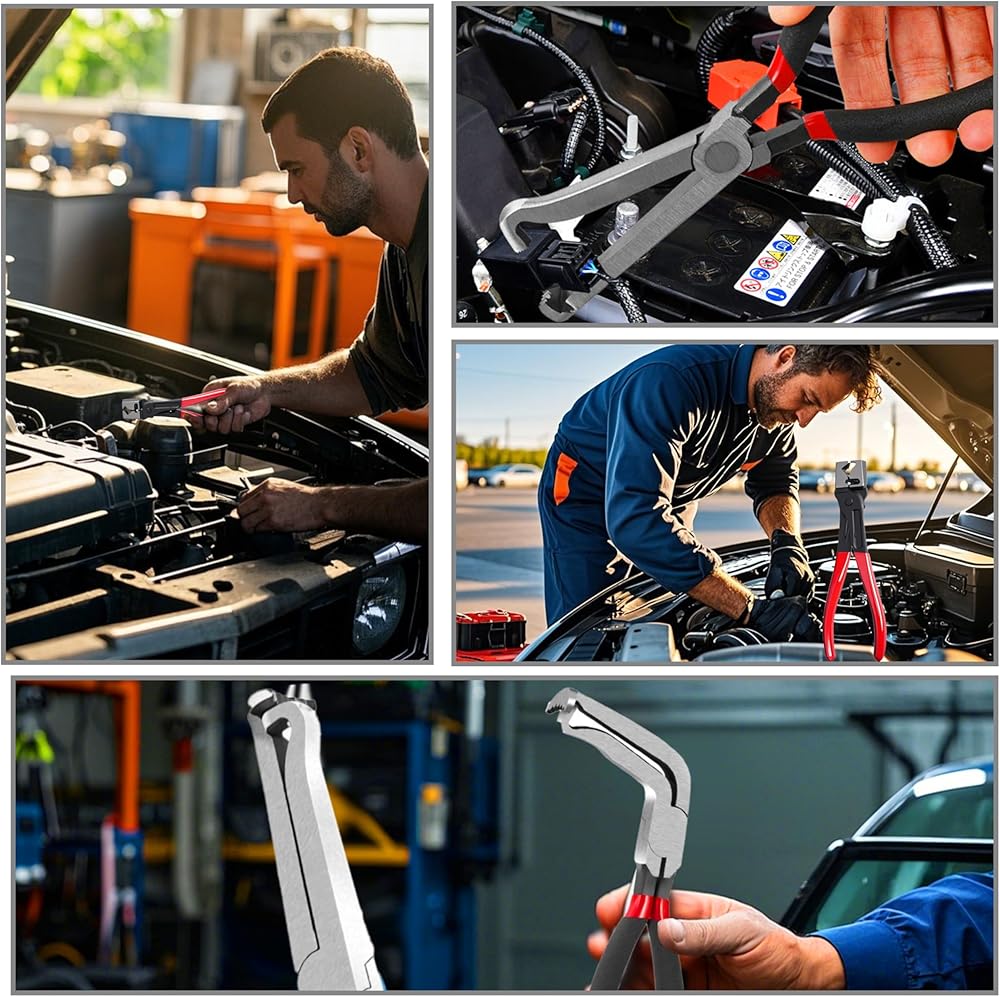 • Design:These curved-design electrical disconnect pliers for cars—also known as connector pliers, safety wire pliers, electrical connector pliers, or automotive electrical connector pliers—are suitable for narrow spaces, making them ideally to work on sensors in tight spots