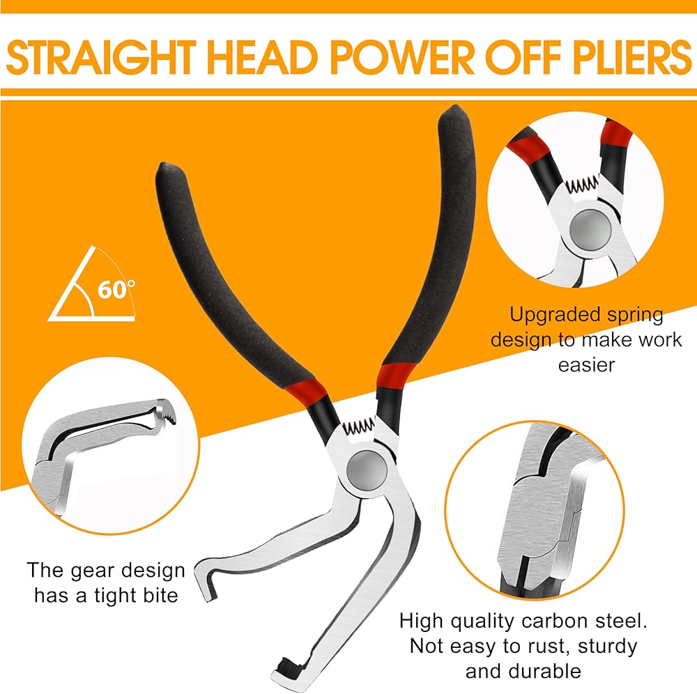 • Easy to Use:Specifically Designed for Automotive Electrical Connectors – These electrical disconnect pliers, also known as electrical connector pliers or automotive electrical connector pliers, feature a 60-degree and straight design to easily remove locking push-tab-style connectors found on mass air flow sensors, fuel injectors, ignition coils, and other applications. The tool can also function as connector pliers or safety wire pliers in certain scenarios. Squeeze the tabs together and lift to separate the connector without damage