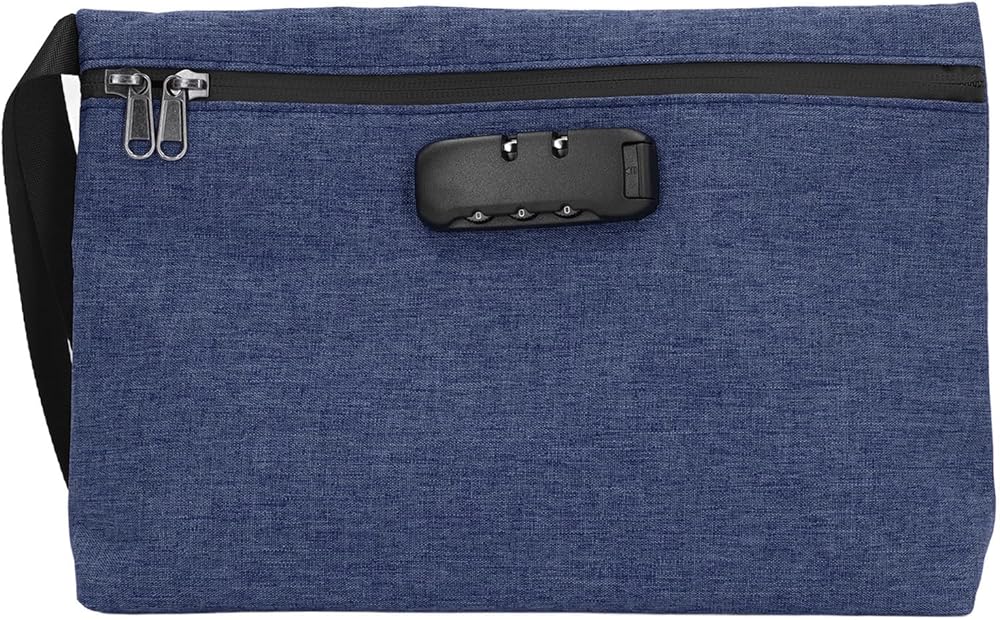 حقيبة إثبات الرائحة مع قفل تركيبة ، قفل قفل الأموال من القفل حقيبة لودائع بنك السفر النقد (الأزرق البحري)
