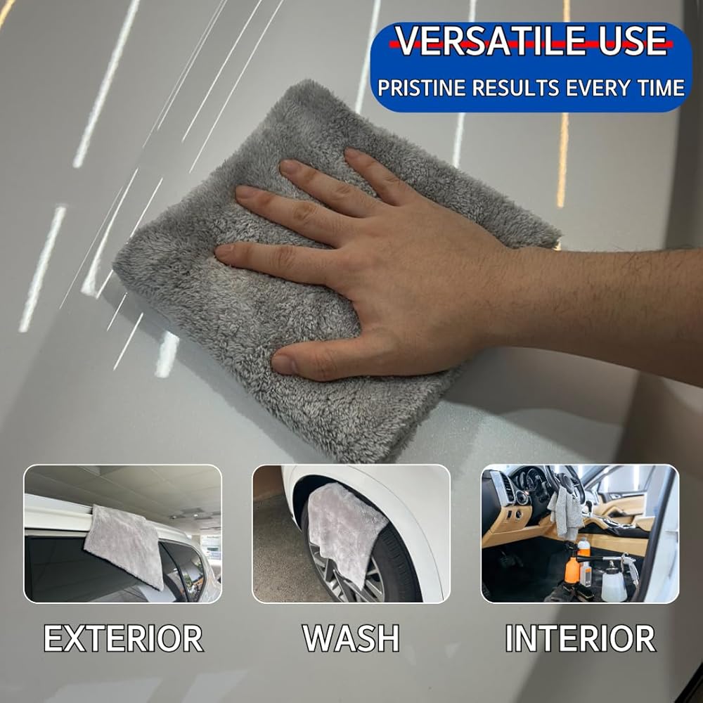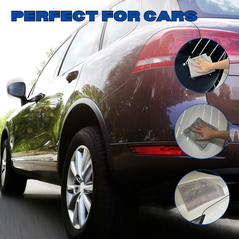 Transform your car care routine with our premium Microfiber Car Towels. Designed for car enthusiasts and professionals alike, these towels deliver unmatched performance in cleaning, drying, and detailing. Measuring a convenient 16x16 inches, they are the perfect size for tackling any job, from wiping down your dashboard to giving your car a streak-free shine. Each towel is crafted from ultra-absorbent 500gsm microfiber, ensuring maximum water retention and quick drying times. Our towels are lint-free and scratch-free, making them safe to use on all surfaces without worrying about damaging your car's paint or finish. The soft, gray fabric is not only stylish but also practical, hiding dirt and grime between washes. Sold in a pack of six, our microfiber car towels offer exceptional value and versatility. Use them for washing, waxing, polishing, and drying both the interior and exterior of your vehicle. Whether you're a weekend warrior or a professional detailer, these towels are your go-to solution for a spotless, showroom-worthy finish. Elevate your car care game with our Microfiber Car Towels and experience the difference that premium quality makes.
